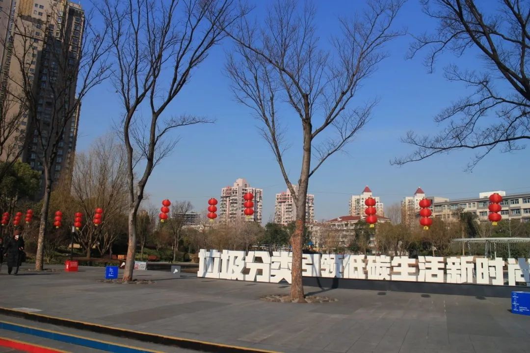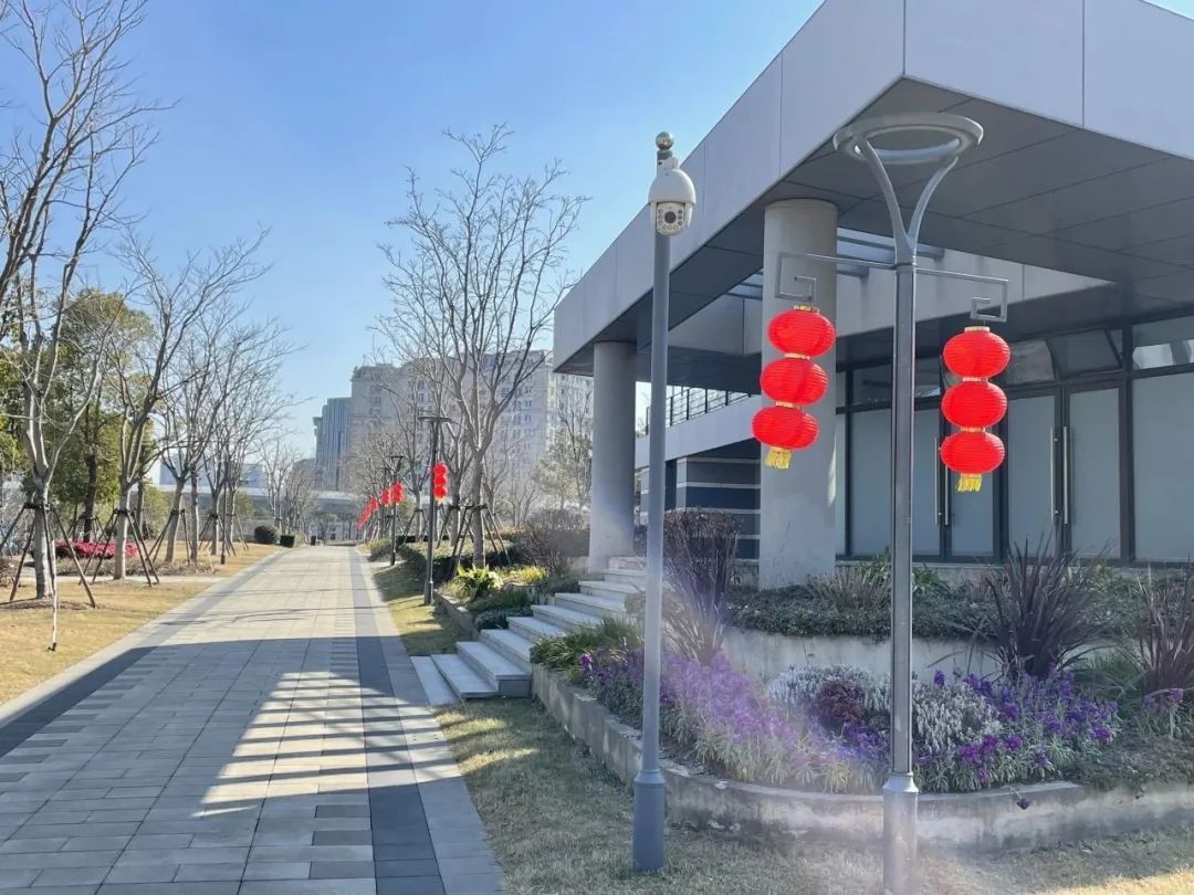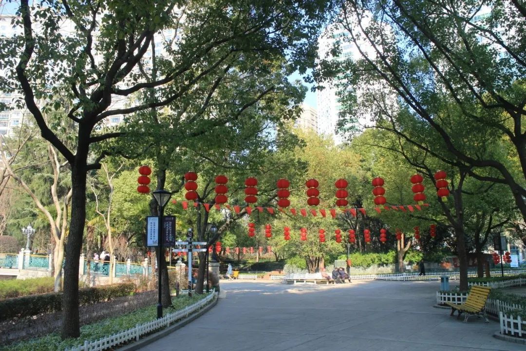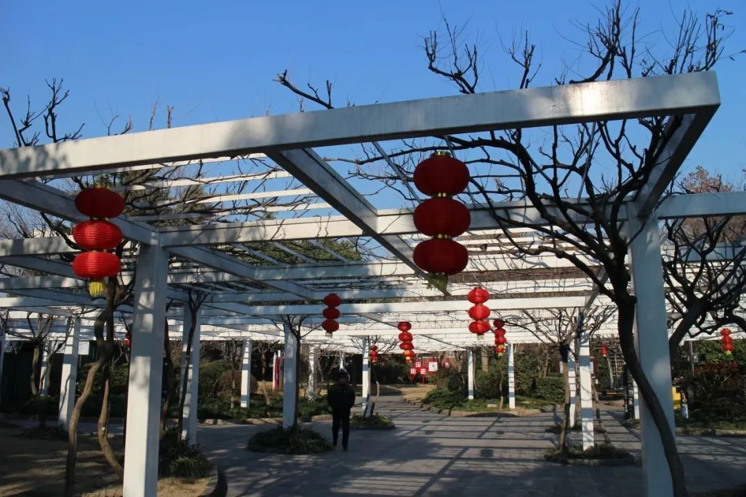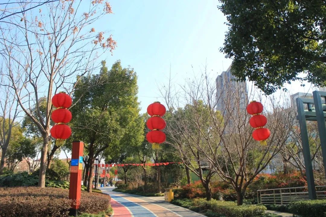 普陀区的各个社区公园通过各种年味小品的打造,灯笼、彩旗的悬挂等表达对新年的美好祝愿,让人们感受到新年的喜庆氛围。