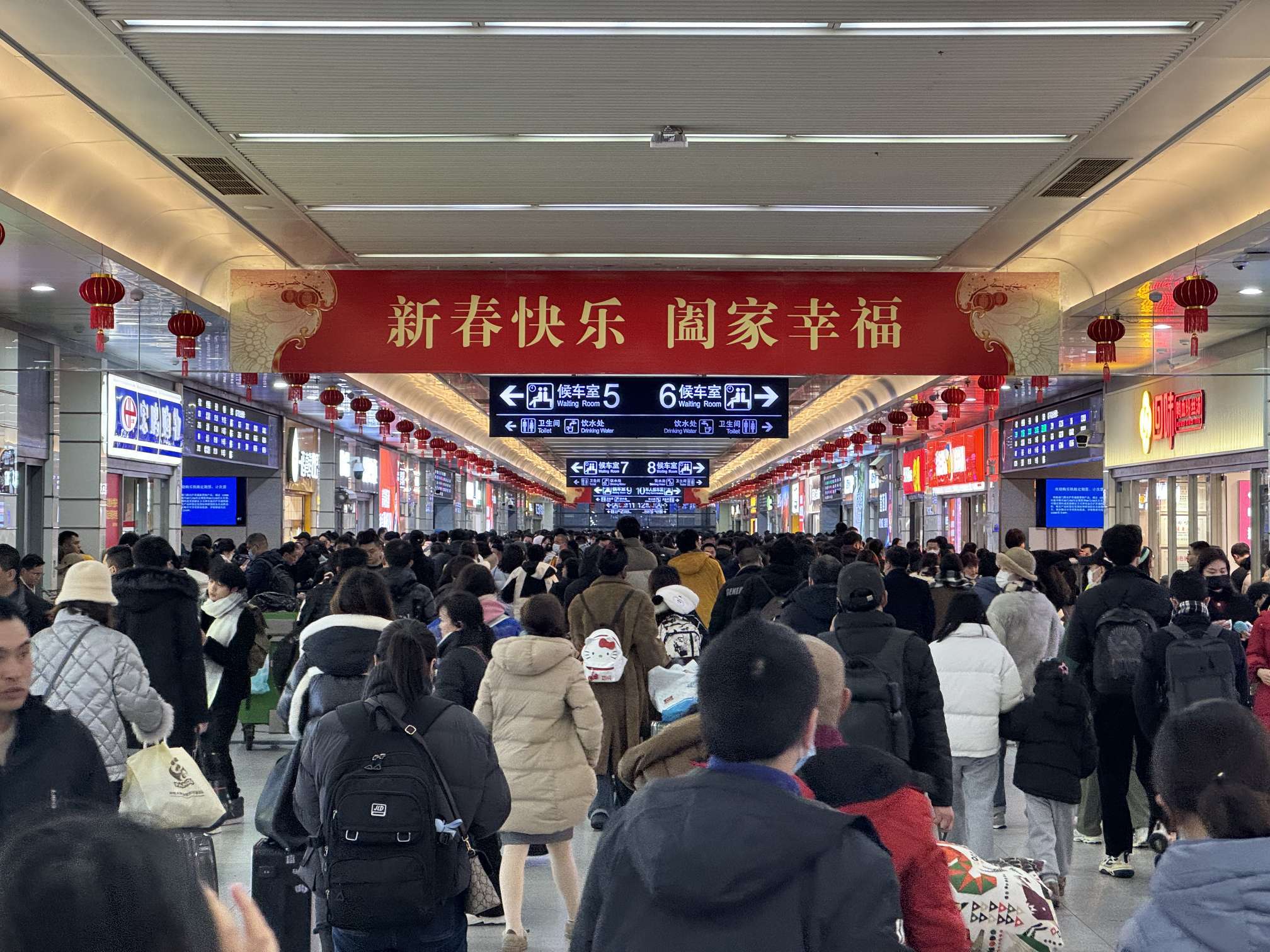 据统计,春运前10日,铁路上海站已发送旅客471.62万人,日均发送旅客47.16万人。今天(2月5日)该站预计发送旅客51.8万人次,其中上海站16.6万人次,上海南站6.4万人次,上海虹桥站28.8万人次。为尽力满足旅客出行需求,铁路上海站今天增开安徽、川渝、徐州等方向旅客列车78列,明天(2月6日)0点至5点增开夜间临客87列。