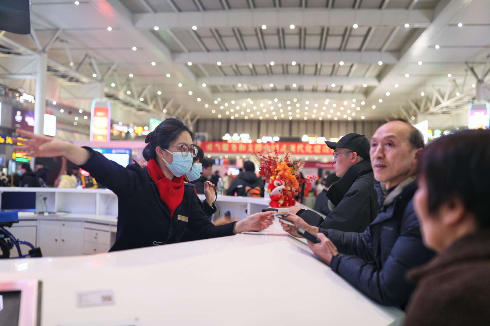 在铁路上海站,车站干部职工组成突击队,做好站内电梯、站台、进出站通道等关键岗位的引导、安全防护。售票部门动态调整售票窗口功能,积极为旅客办理退票、改签等业务。设备部门加强对照明、空调、饮用水、消防等设备设施的运维。此外,各站区加强与地方管理部门的联系,根据客流情况,适时申请延长周边地铁、公交、出租车的运行时间。