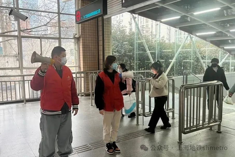 站区的党、团员们纷纷出动,在曹杨路站进行志愿保驾。在曹杨路站,志愿者们身着醒目的红色马甲,忙碌的身影在车站的各个角落穿梭。他们有的帮助老人和孩子上下车,有的指引方向,有的维护秩序。每一个微笑,每一个动作,都传递着温暖和力量。
