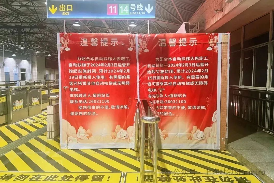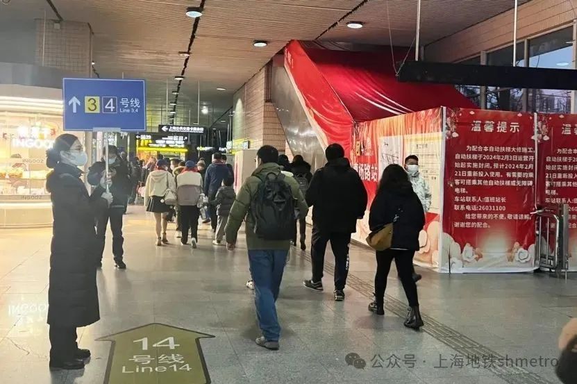 为配合自动扶梯大修施工,3号线曹杨路站Z1、Z2、Z5、Z6自动扶梯于2024年2月3日运营开始起实施封闭,为避免车站的施工对乘客出行造成的可能影响,同时提供安心、有效抵达目的地的最佳路线,3号线曹杨路站充分准备,确保车站客流平稳通行。