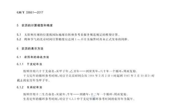2017年5月12日,中科院紫金山天文台起草《农历的编算和颁行》(GB/T33661-2017),2017年9月1日施行。