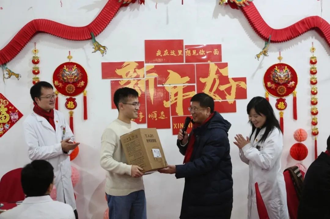 医院党政领导为医院青年职工及医学生送去新春祝福,与青年职工、医学生代表一起包饺子、写福字,将浓浓的年味融入到欢声笑语中。活动过程中还设置了互动抽奖环节,将现在气氛一次次推向高潮。