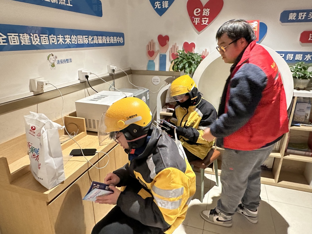 在外卖骑手站点,工作人员向外卖骑手们宣讲了佩戴头盔的重要性,以案例分享的形式,告知外卖骑手应该如何正确佩戴头盔、如何避免疲劳驾驶等交通安全知识,并向他们发放了交通安全宣传资料,用不同形式宣讲增强重点人群交通安全意识的目标。