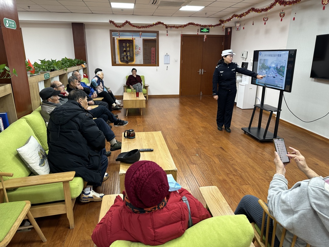 在综合为老服务中心,工作人员结合老年人使用辅助器具的情况,告知他们如何遵守交通安全,加深了老人们对交通安全规则的掌握和重视。培训中,民警围绕“上海交警”App和属地派出所可受理的交通业务为老人们答疑解惑,缩短老人们的办事距离,让群众办事少跑路,打通关爱服务的“最后一米”。