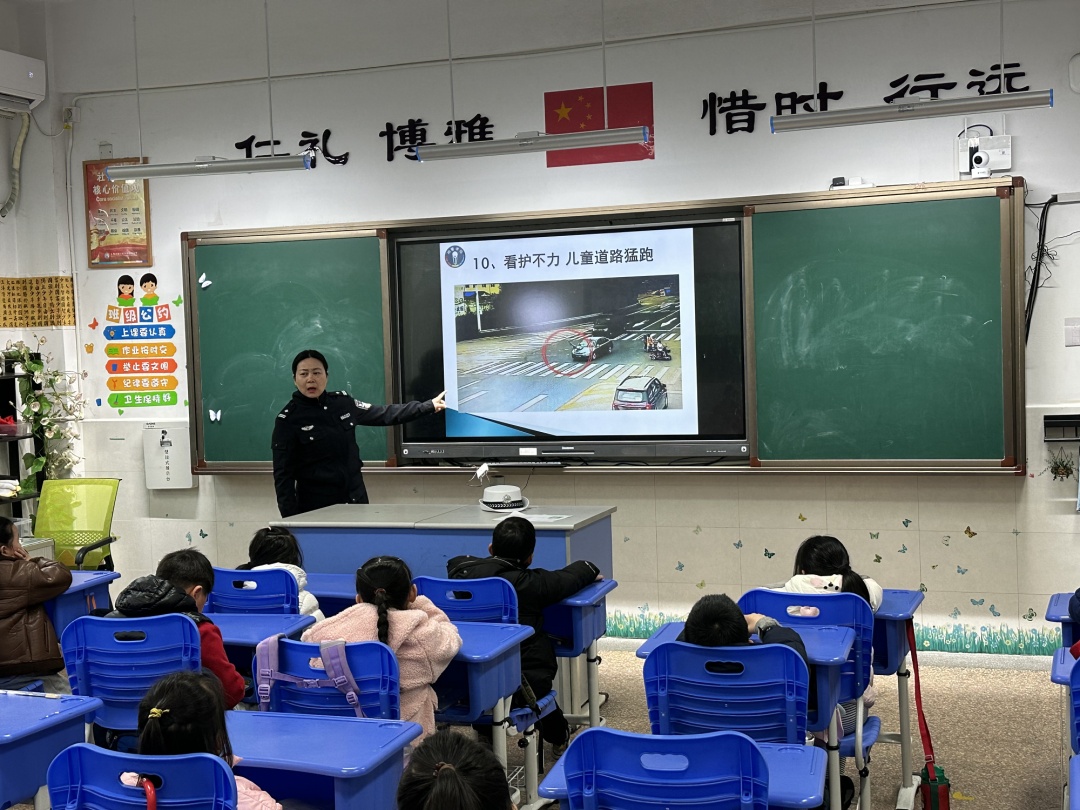 在九里亭爱心寒托班,张燕中详细地宣讲了正确出行的方法,让学生们了解交通规则。九里亭派出所民警则积极与学生们互动,呼吁“小手拉大手”,将交通安全知识带回家,与家人共走安全路。民警还为学生们送上反诈3D车模,充分调动起大家学习的积极性。