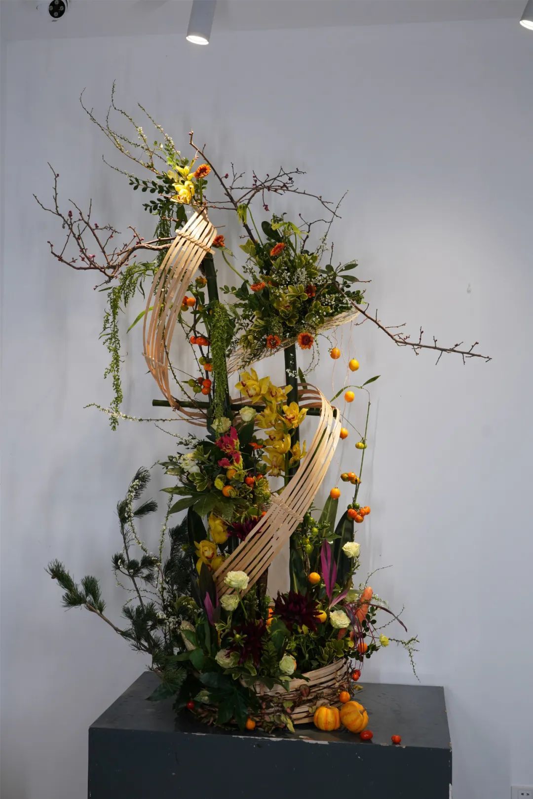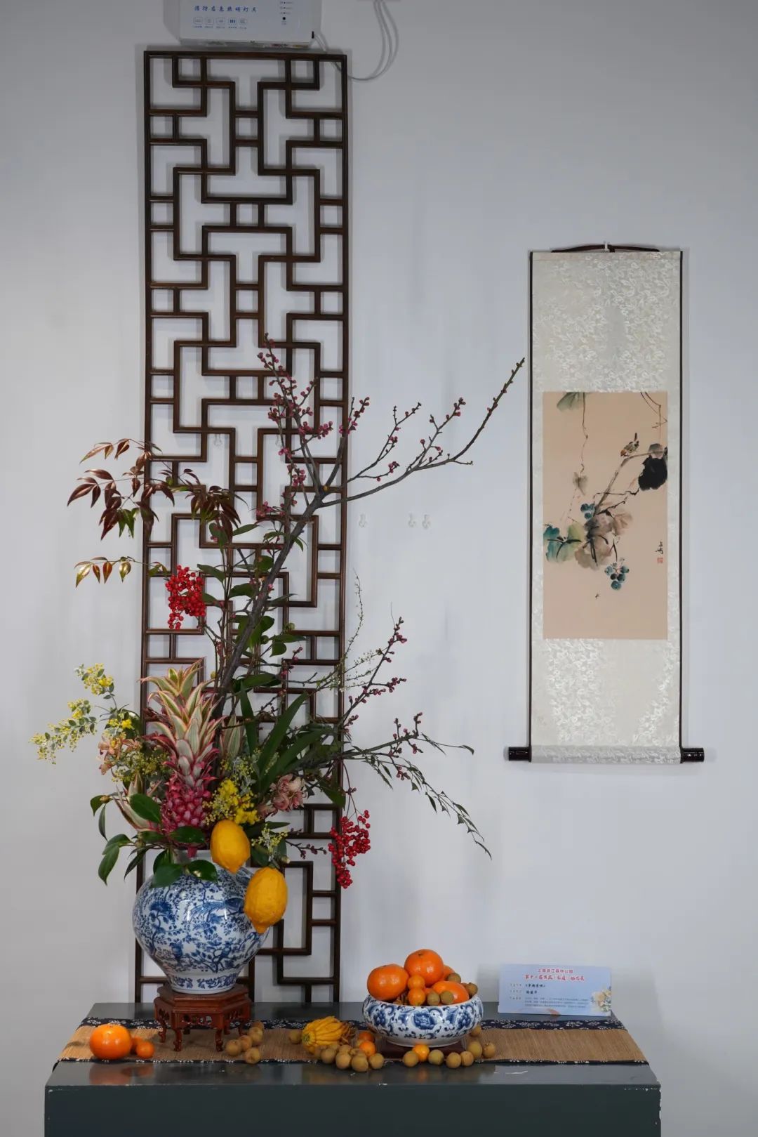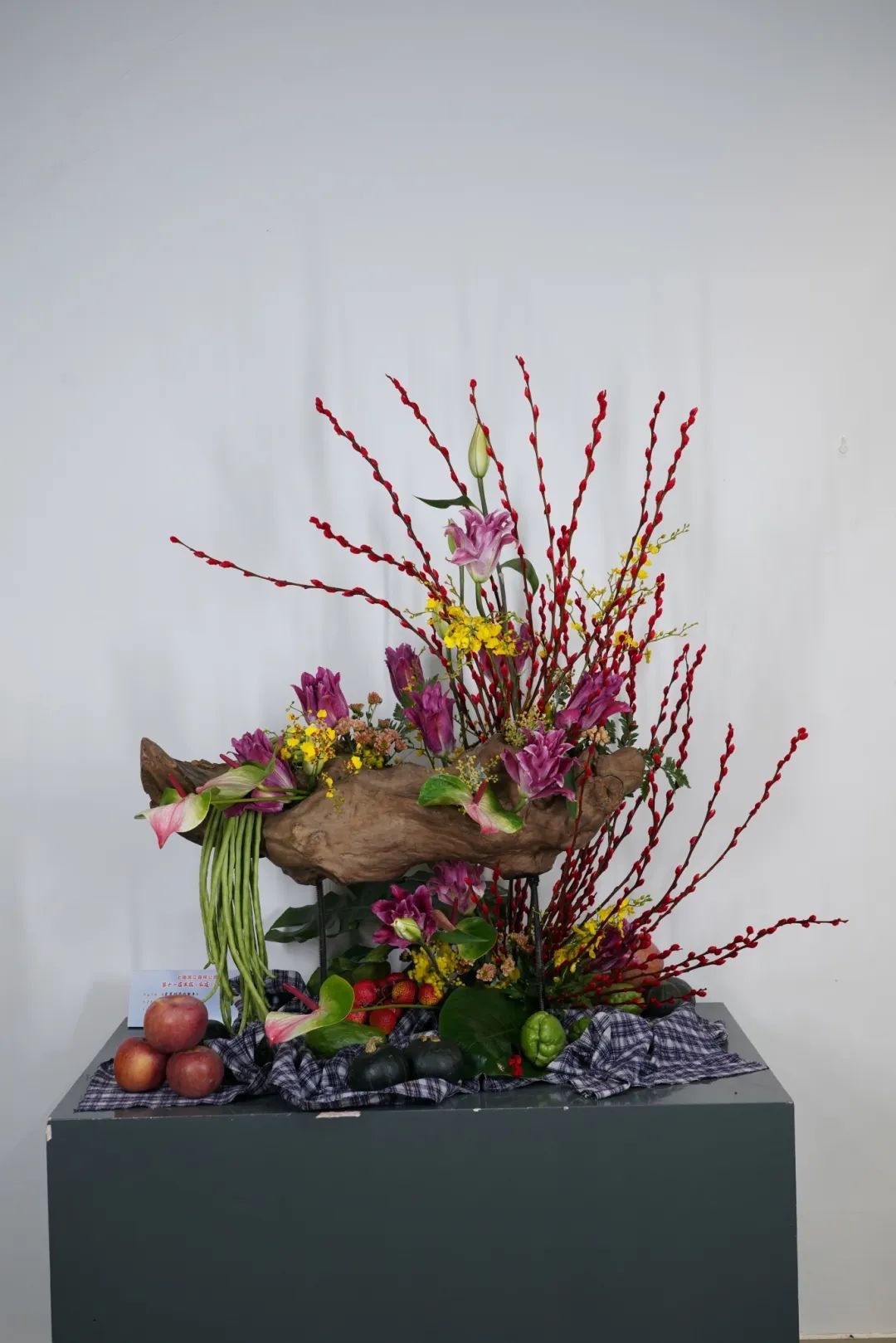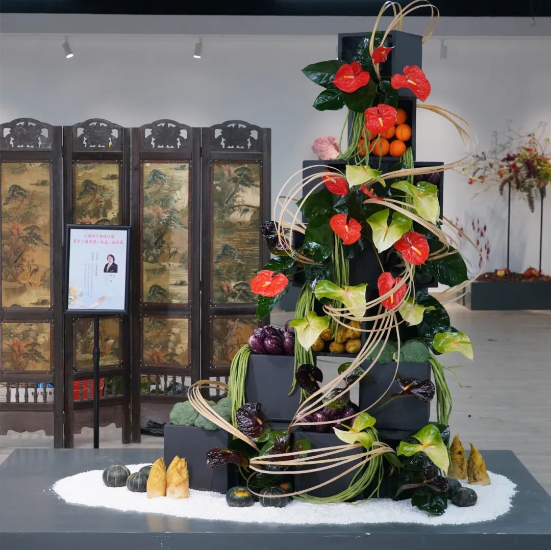 本次果蔬插花展汇聚上海优秀的花艺师精心创作的20余件作品,展品表现了海派插花的“自然、秀雅、时尚、多元”的特色。
