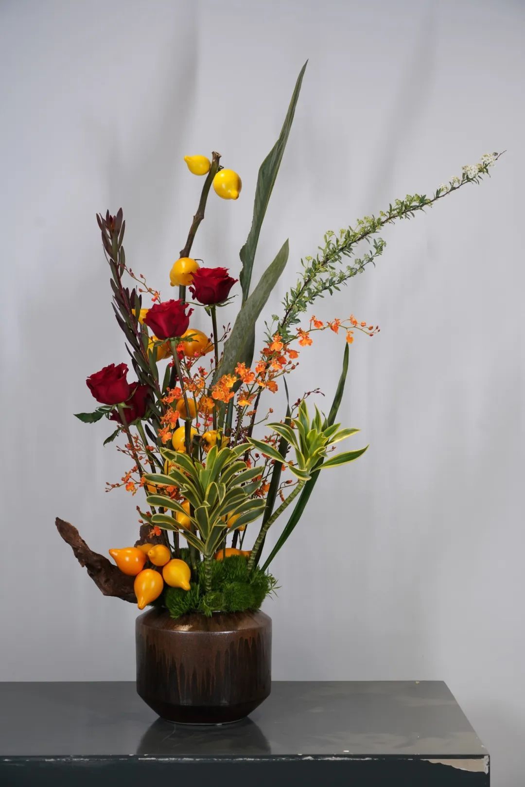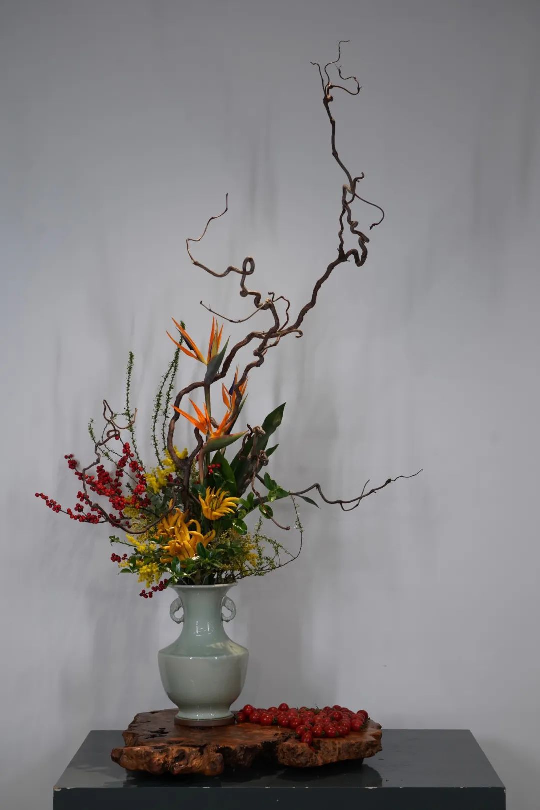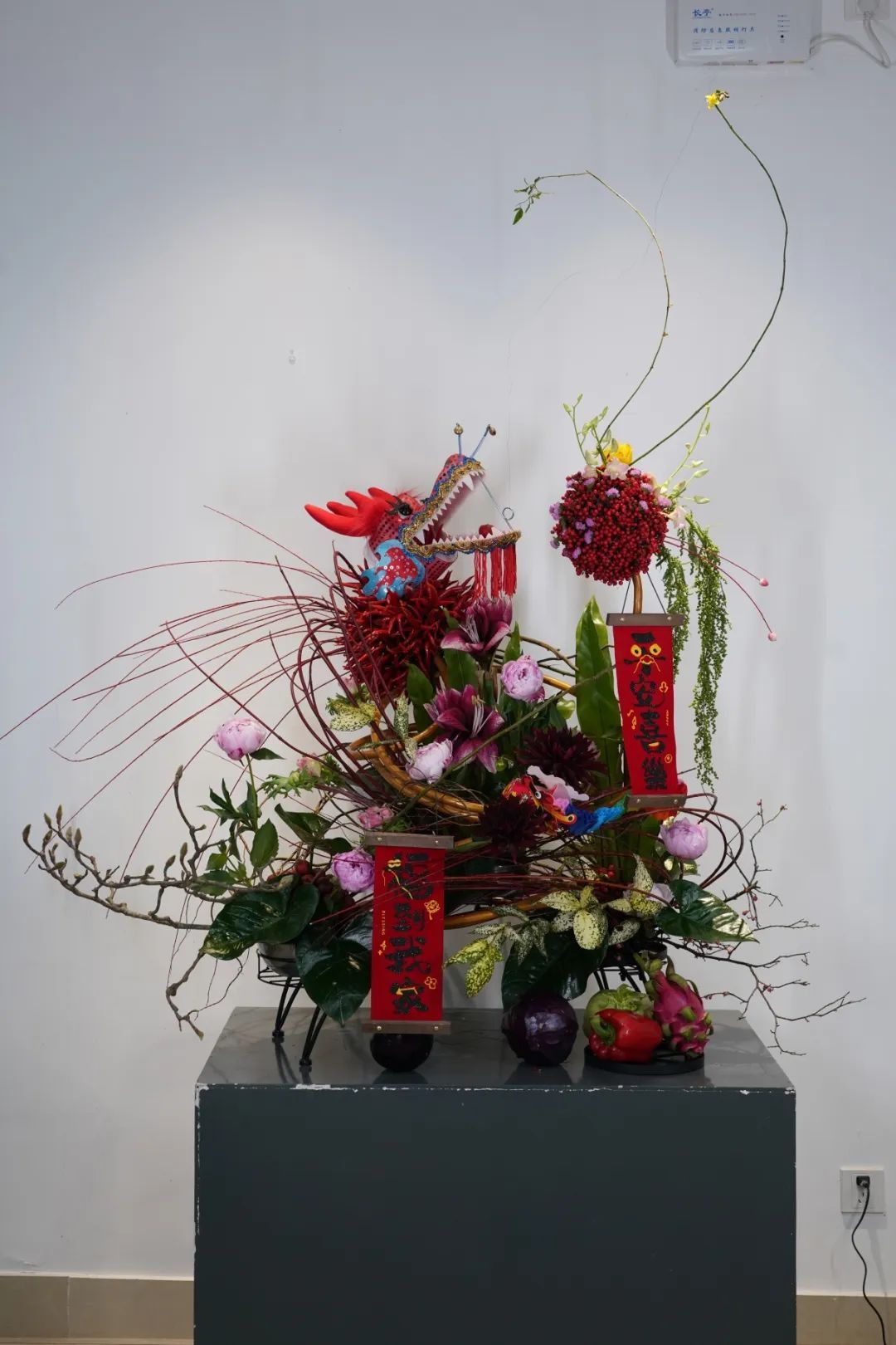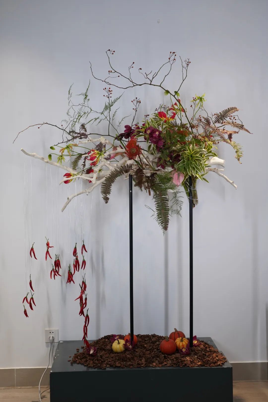 本次果蔬插花展汇聚上海优秀的花艺师精心创作的20余件作品,展品表现了海派插花的“自然、秀雅、时尚、多元”的特色。