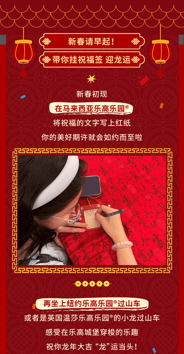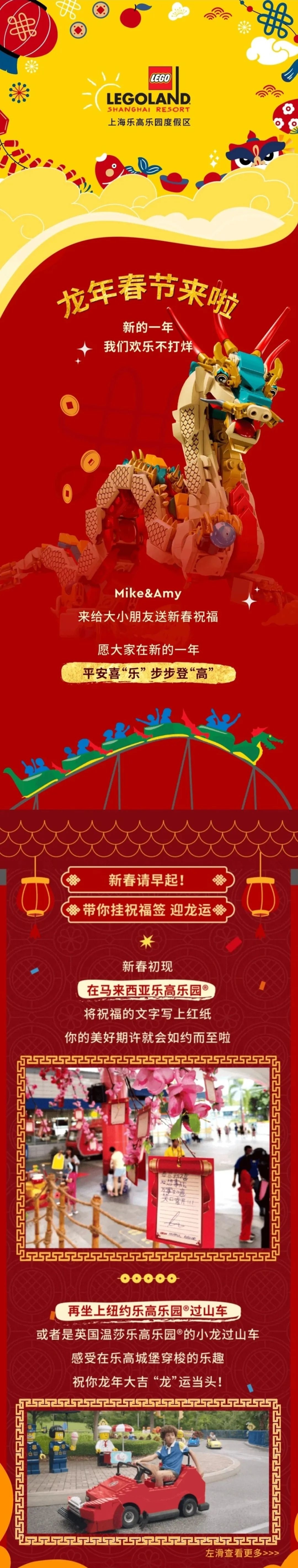 上海乐高乐园度假区 给大家送上新春好礼啦! 点击下方图片或原文链接 可以领取专属的龙年红包封面 和表情包 另外,小编还额外加赠 10份乐高大礼包 赶紧来参与吧!
