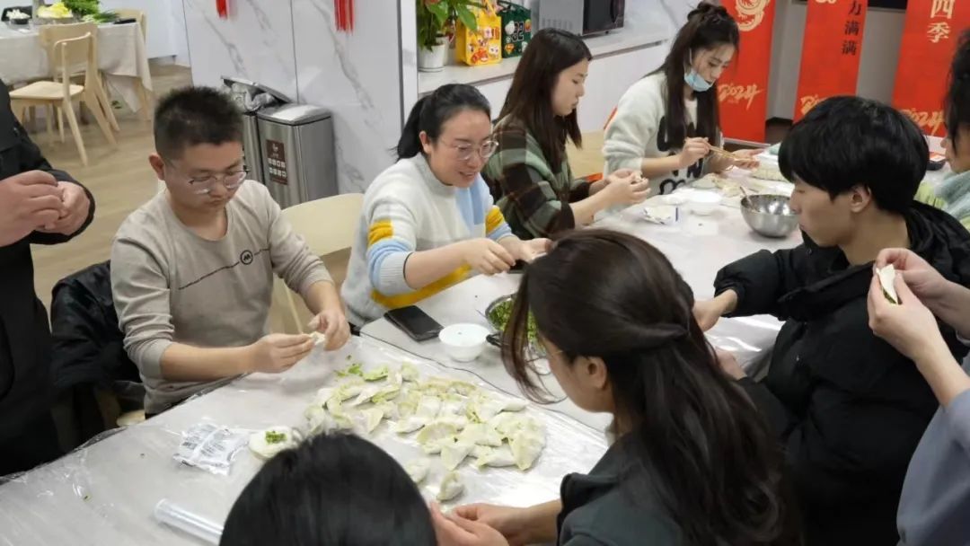 一双双巧手将洗净后的香菇、韭菜和肉末互相搭配在一起,成为各种滋味的饺子馅。现场人多力量大,不一会儿,满含心意的饺子摆满了桌面。经过一个下午的忙碌,终于开锅啦。饶克金说:“第一次跟这么多人一起吃‘年夜饭’,觉得心里非常开心,我相信新的一年,也会像今天我们吃饭一样,2024年会更加的红红火火,大家也会越来越好。”过年的脚步越来越近,当大多数人与家人团聚,沉浸于节日气氛里的时候,现场也有一些人因为工作等特殊原因,无法回家与家人团聚。“我叫程娅娟,来自湖南衡阳,今年是我20多年第一次在外面过年。小年我们在华润有巢已经感受到非常有年味。今年虽然不回家过年,但是同事、租客朋友都给我一种很温暖的在家一样的感觉。希望在家过年的父母,所有家人都能够在新的一年,身体健康、红红火火、万事如意,也祝全国人民,大家新的一年恭喜发财。”“我是来自安徽泗县的陈翔,因为上海这边春节期间我要值班,我在这边是带着一个孩子过年,爱人在家带着孩子过年。同时祝愿家里人,全家身体健康、幸福快乐,祝福大家,新年快乐。”“我是陈裕华,这是我第一次在上海过年,我妈妈会过来陪我一起。希望大家在新年一年当中,身体健康、工作顺利,升职加薪。”