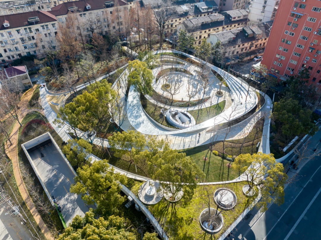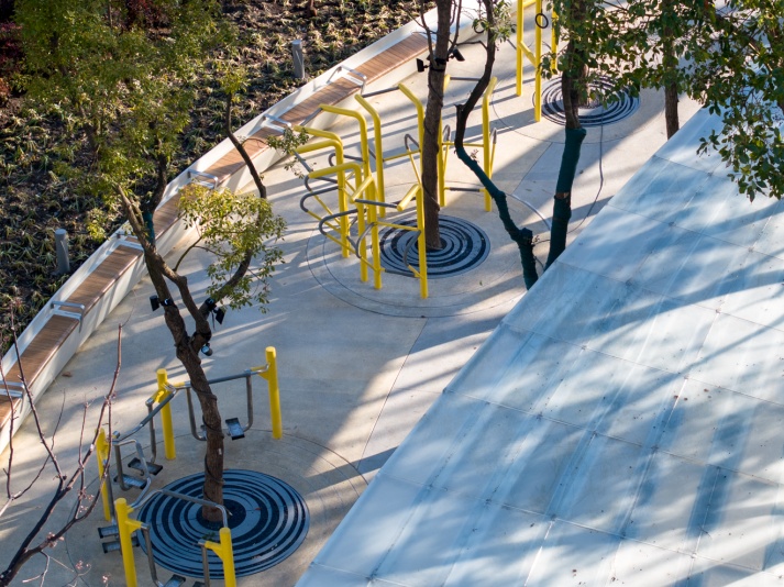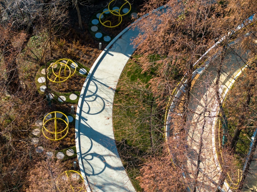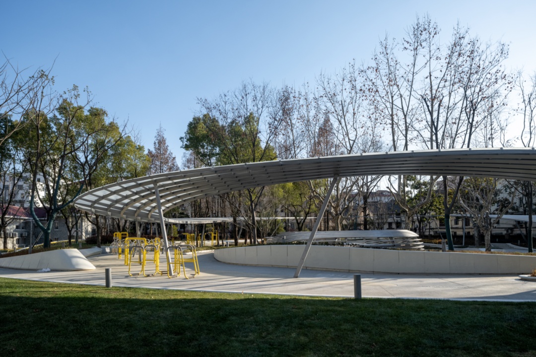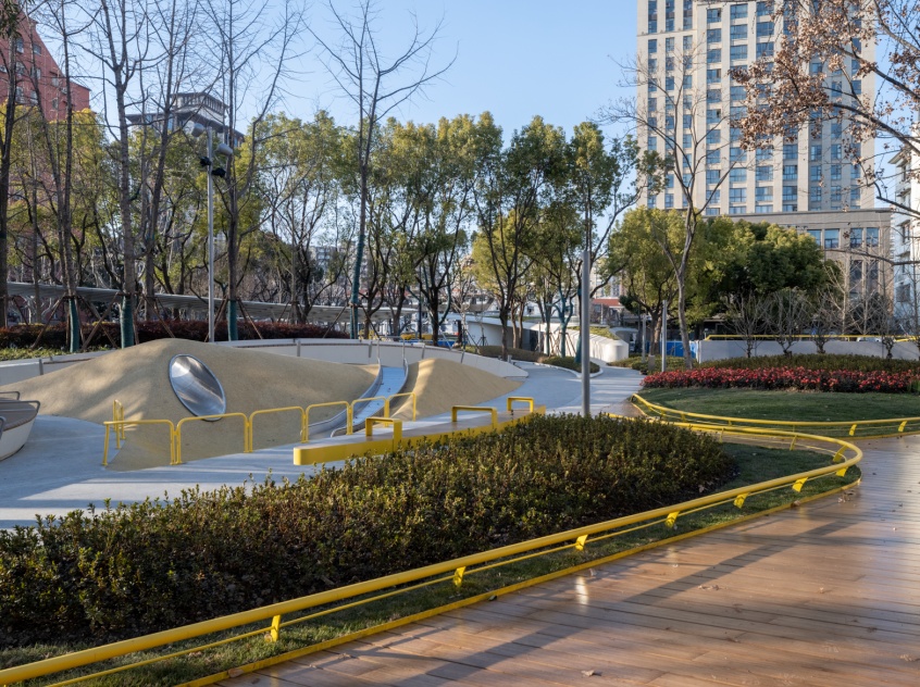 改造后的日晖绿地为全年龄段的市民提供了丰富的休闲活动场地,包括休憩看台、旱喷广场、健身空间、雨水花园和儿童乐园等。