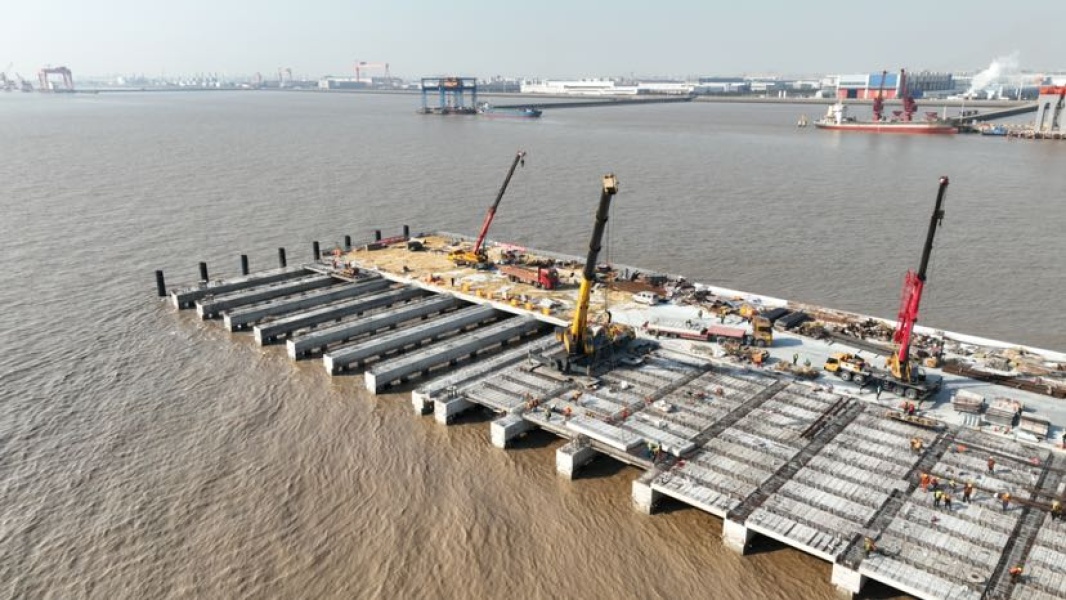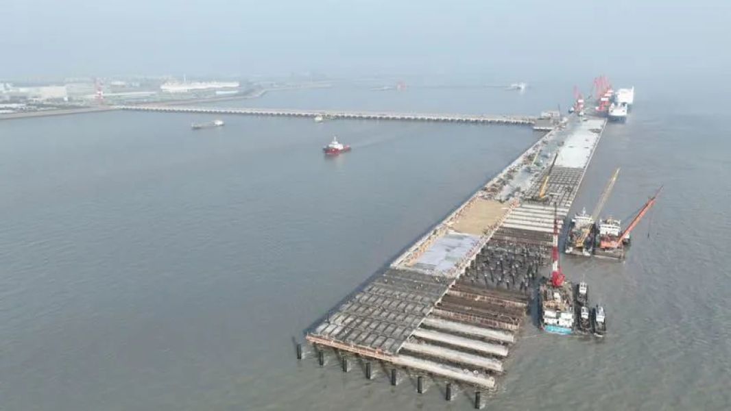 龙年春节临近,在洋山港海事局“安全五员”全过程全方位的服务保障下,上海南港码头二期工程水域部分最后一段面层混凝土于近日浇筑完成,标志着该项目的主体结构已全部完工。