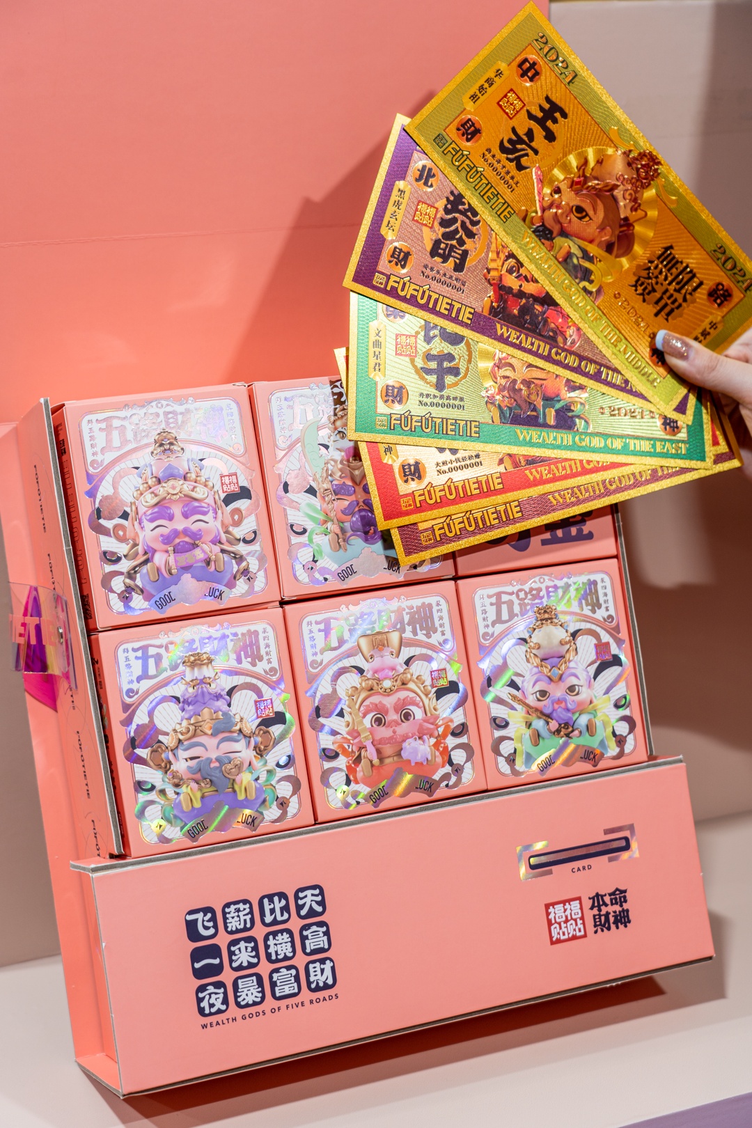 活动当天,定制版武财神关公大娃购买权现场限量开放,主打实名制祈福招财。情侣到福福贴贴快闪店消费,可加赠“财情双手”章。活动当天,微信关注商场及福福贴贴公众号,即可得心愿牌,许愿后可得财神金币1枚。