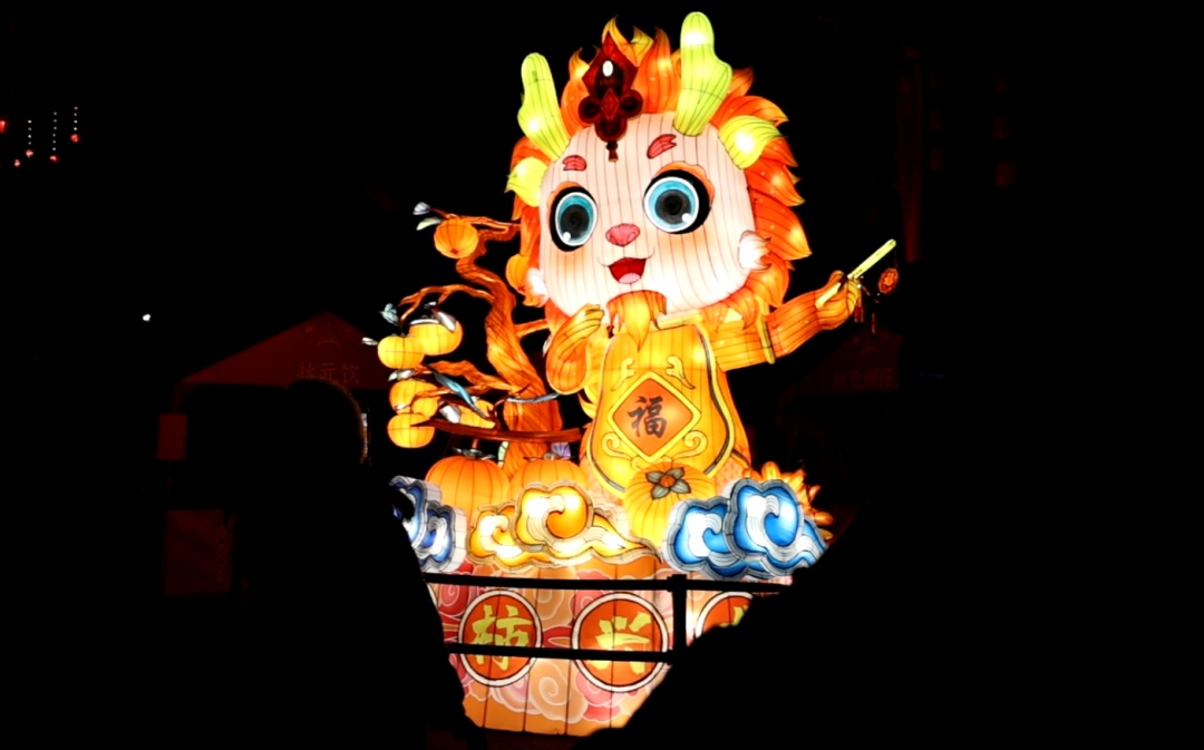在三桥广场,同样还有一组灯彩,以卡通龙和柿子树进行创意设计,喜庆可爱,寓意“万柿兴龙”,红红火火,是市民游客拍照打卡的必选项。