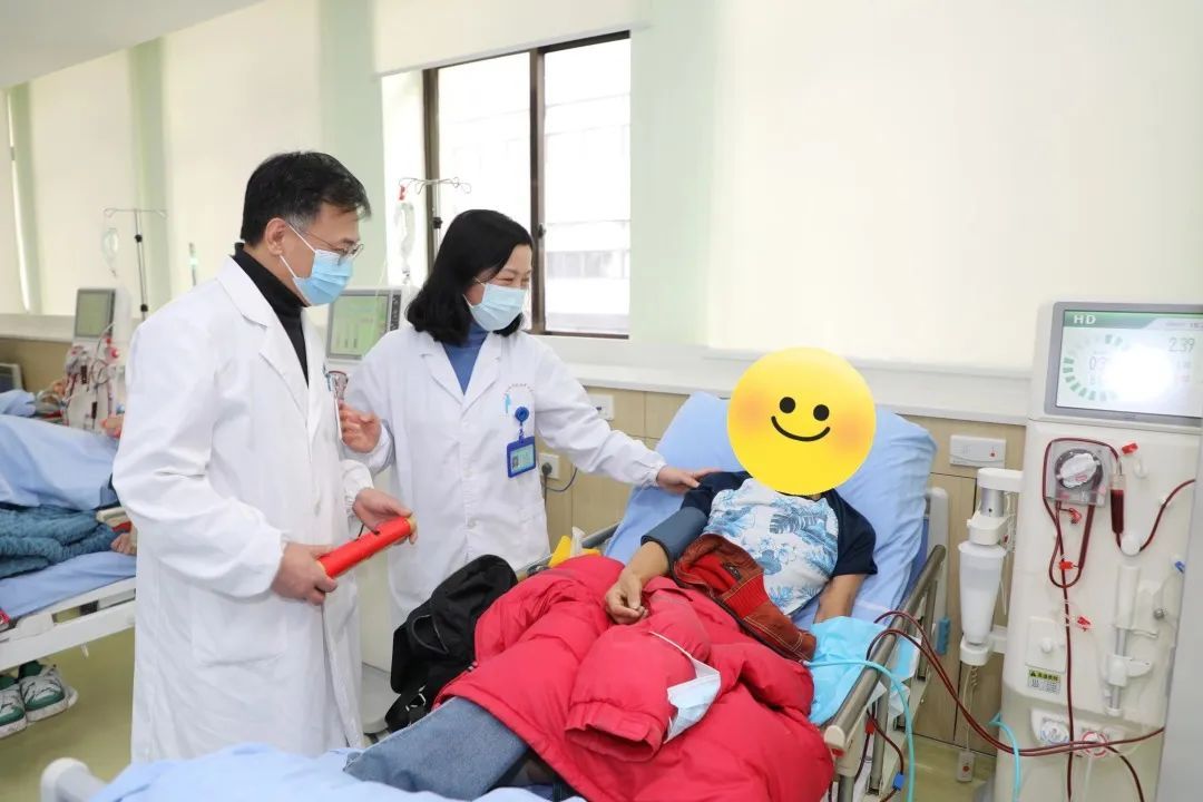 在血透中心,医护人员们收到医院“娘家人”的祝福和关爱后,又把这份“温暖”传递给了正在透析的患者。院领导和医护人员一起,为患者送上了有着美好寓意的春联。“谢谢你们,有你们在,这个春节我们不会孤单。”患者和家属们感激地说。
