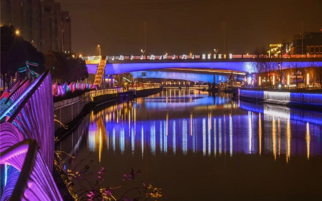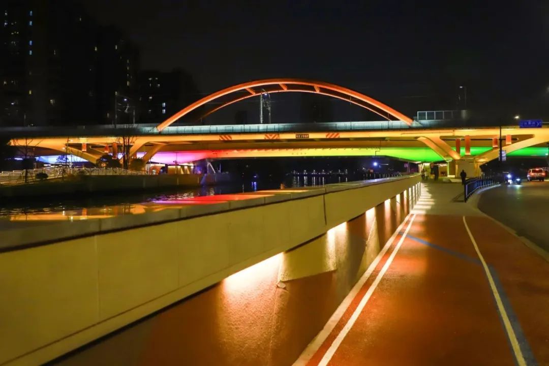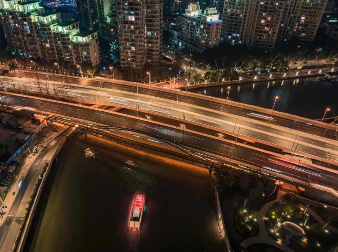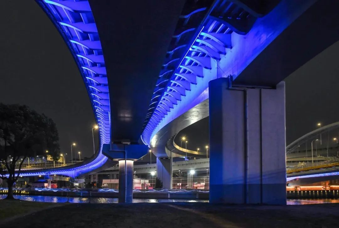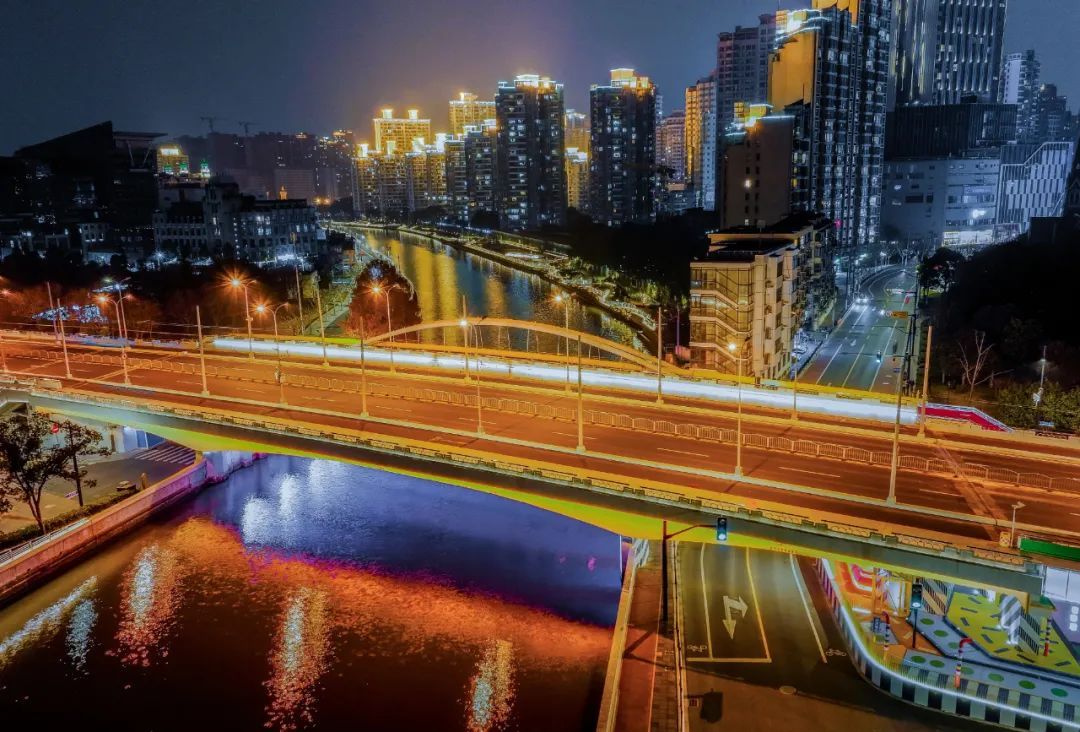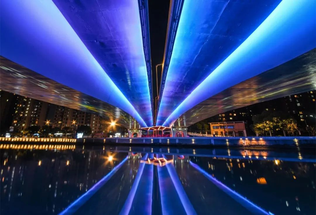 新春佳节,哪一座普陀的桥梁没有泛光照明?无论是高空俯瞰,还是在桥洞仰望,夜晚尽显姹紫嫣红,光影妩媚诱人。普陀的桥一定是节日打卡的好地方。