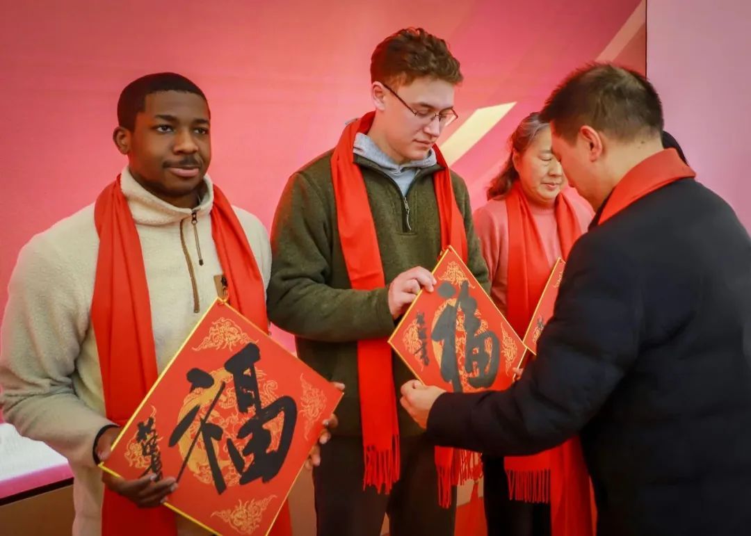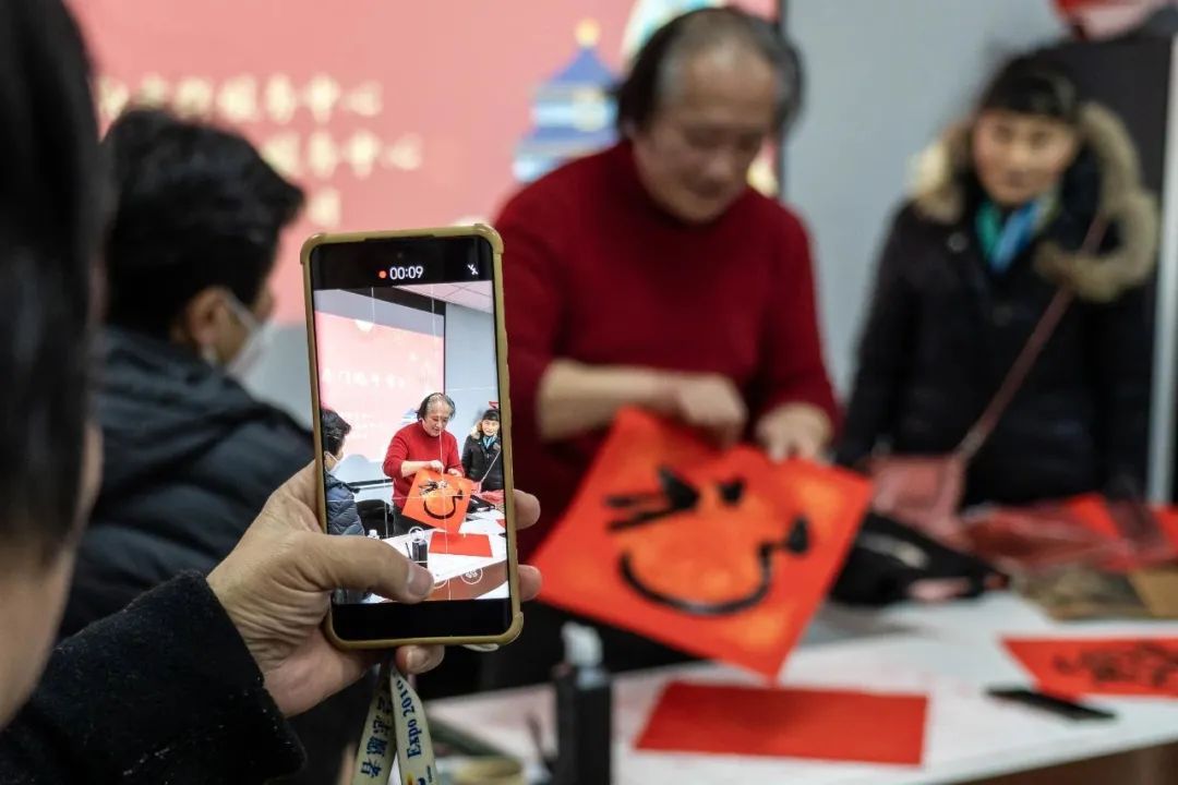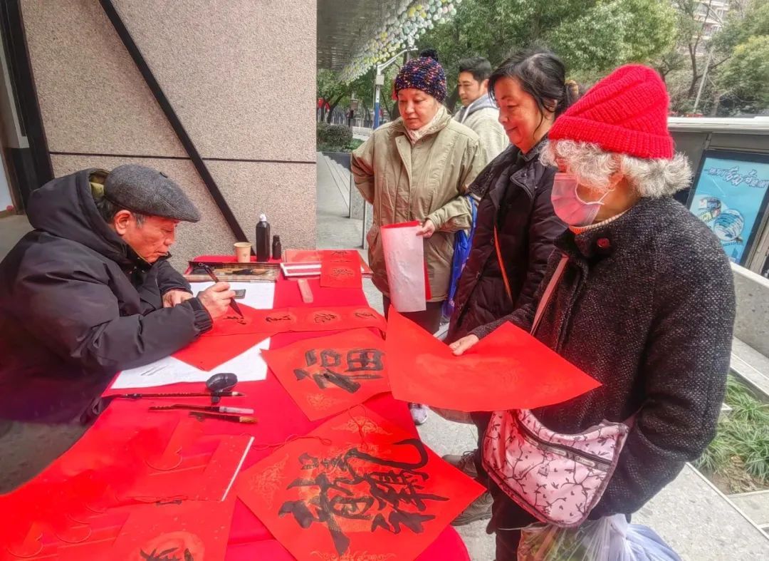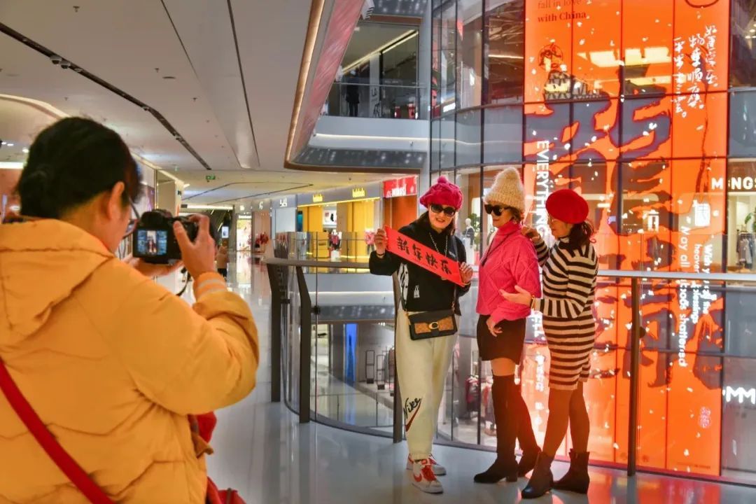 写春联送路人,逛商场购衣物,网红打点上留个影,把新年喜庆带回家。看!伊朗朋友在大洋晶典天安千树打卡,与中国龙合影。农历新年不仅仅是我们中国人的节日,许多老外也喜欢在中国过年,他们讨春联要福字,与普陀人一起为新年祈福。