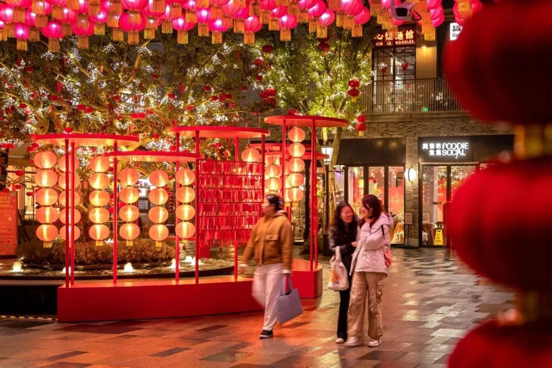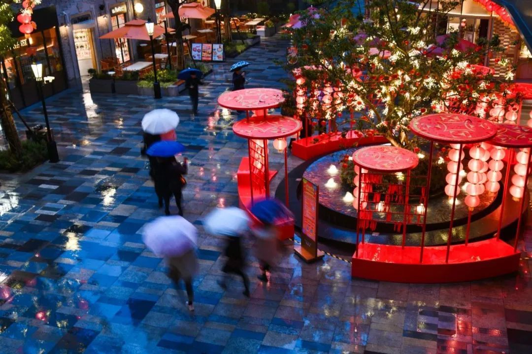 挂上龙年吉祥物,张灯结彩营造新年欢乐氛围,到处都是红红火火过大年的景象。