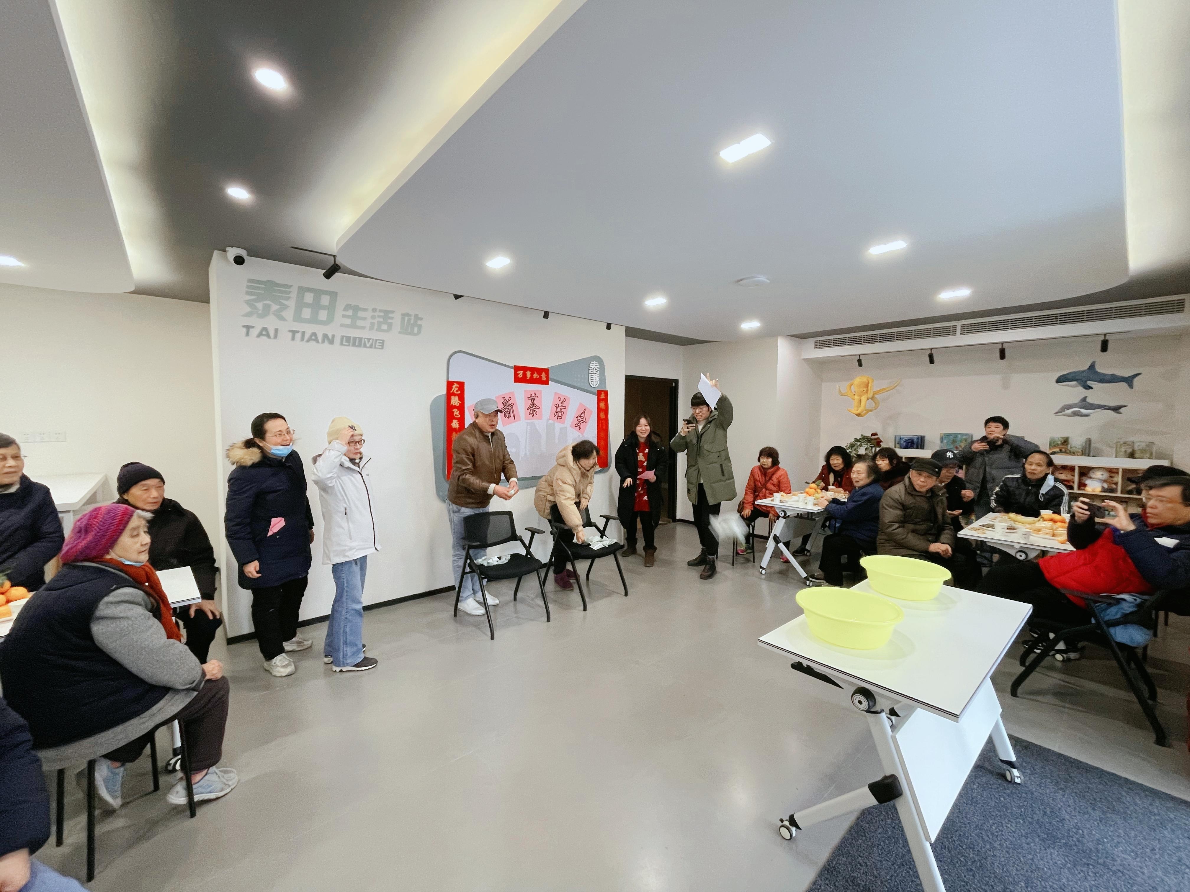 “泰康居委活动室升级变成‘泰田’生活站,功能齐全,老灵额!期待节后在这里参加社区活动啦!”近日,装修一新的打浦桥街道泰康居委“泰田”生活站进入试运行,在春节来临之际开展了一场“迎新茶话会”活动,部分社区党员、居民志愿者受邀成为首批体验者,互动游戏丢沙包、围坐一堂话未来,对泰康社区新一年的发展充满信心和期待。