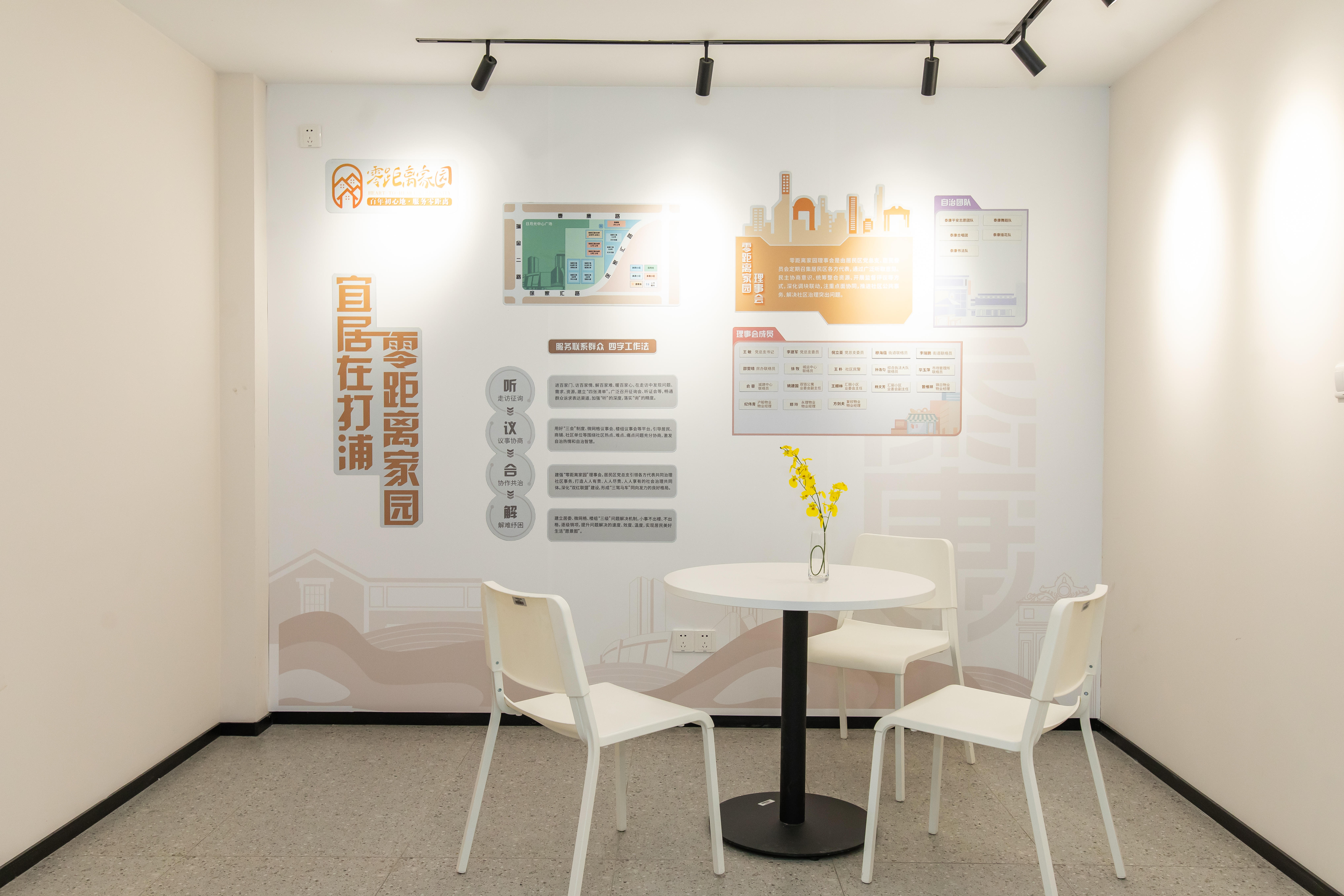 泰康居民区由徐家汇路、瑞金二路、泰康路合围而成,下辖双钱公寓、富源公寓、天天花园、汇丽小区三个商品房及一个老公房小区,现有931户居民,常住人口2000余人。2023年,在街道指导下,泰康居委对辖区居民进行了“四百”大走访,不少居民提出:“居委活动室空间布置陈旧,功能设置单一。希望可以有所改变。”泰康居委活动室位于徐家汇路454弄46号乙底楼,建设年代较早,开展的活动以“零距离家园”理事会、“三会”以及部分自治活动为主。“活动室应该具备哪些功能?空间如何分配和布置?”居委干部们以走访为契机,广泛听取居民们的意见和建议,并且在街道的支持下,召集居民们多次召开“三会”,为活动室定出了焕新计划,并且在2024年春节来临之前完成了装修和布置,将原来的居委活动室升级为“泰田”生活站。