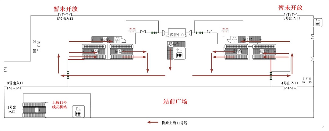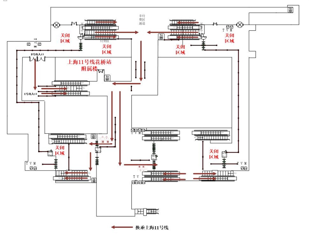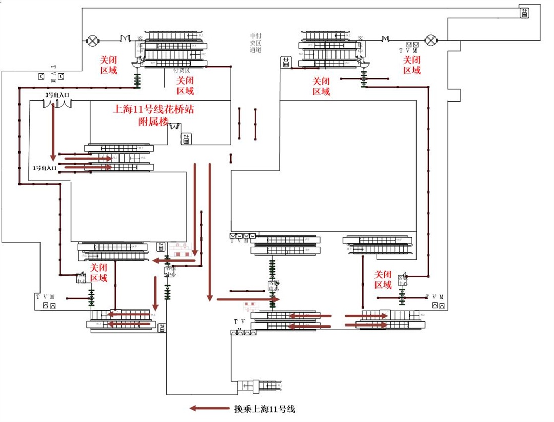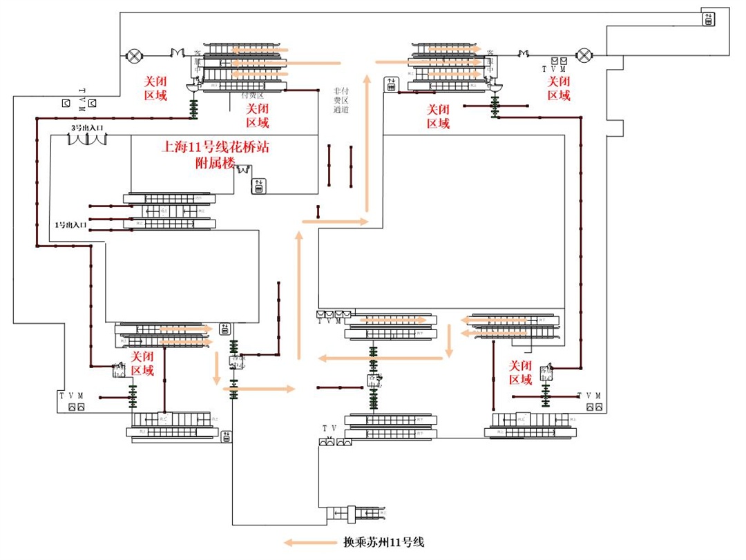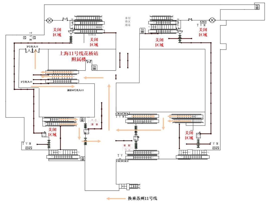 据苏州轨道交通消息,为做好春节期间的客流组织,苏州轨道交通决定于2024年2月10日(正月初一)至2024年2月17日(正月初八)关闭11号线花桥站东西两端换乘连廊(含“Metro大都会、苏e行专用通道”)。现场将根据客流情况,采取限流、分流措施。请乘客根据指引有序从中间非付费区换乘连廊、站外广场进行换乘,给您带来不便敬请谅解!具体换乘通行变更调整如下: