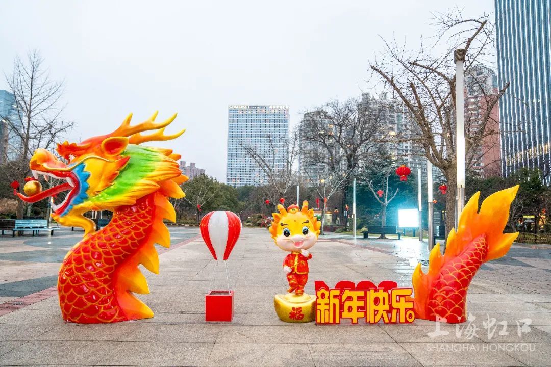 四川北路公园内,则摆放了两种风格迥异的龙雕塑,或威风凛凛,或俏皮活泼,预示着新的一年将充满活力和希望。