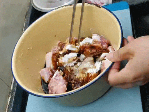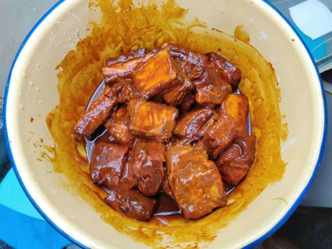 4.放入小排,充分上色裹浆。