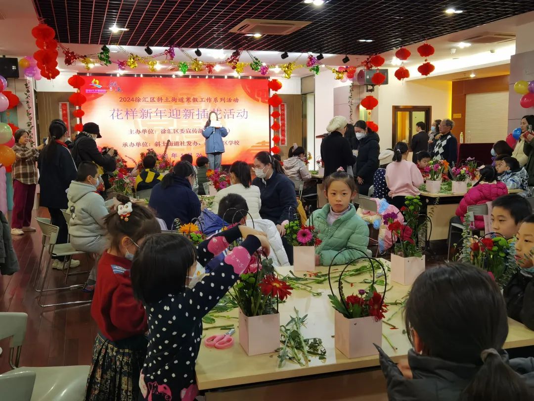 插花以自然之美为灵感,通过巧妙的构思和精心的搭配,承载着人们对于寓意吉祥、寄托美好愿望的方式。在徐汇区斜土街道的社区学校中,辖区内的小朋友们在“花样新年迎新插花”活动中,以插花艺术为媒介,放飞想象力和创造力,共同迎接新年的到来。