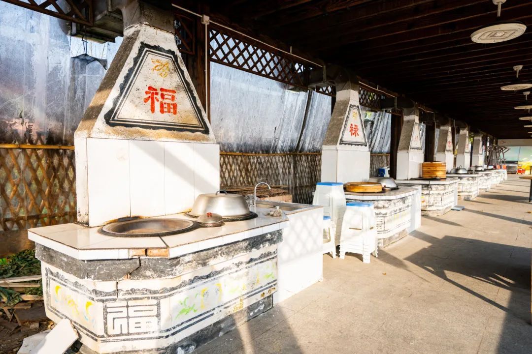 而一旁的“又见炊烟”体验区域,数口农家土灶引人注目,游客可以亲自动手烹煮一桌拿手的饭菜,体验旧时农村烧火添柴的袅袅炊烟。“食材都是村里新鲜采摘的,也可以选择让村里的嬢嬢们下厨,凭借着多年积累的烹饪经验,展现地道的乡村美味。”迎龙村村委工作人员介绍,2023年端午节,“又见炊烟”售卖村民阿姨自己手工制作的大肉粽,大受欢迎,供不应求。基地请来20多个村民阿姨加班加点制作,6口土灶最多一天烧了5000个粽子,15天里更是做出了20多万元的销售额。