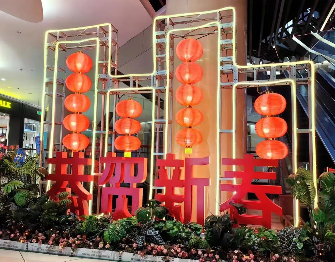 各个商场也纷纷动用巧思,推出龙年主题艺术装置,张灯结彩,呈现一派红红火火的喜庆氛围,有的布置起红灯笼走廊,有的搭建起龙年主题新春集市,吸引广大居民群众前来放松休闲,感受浓浓年味。