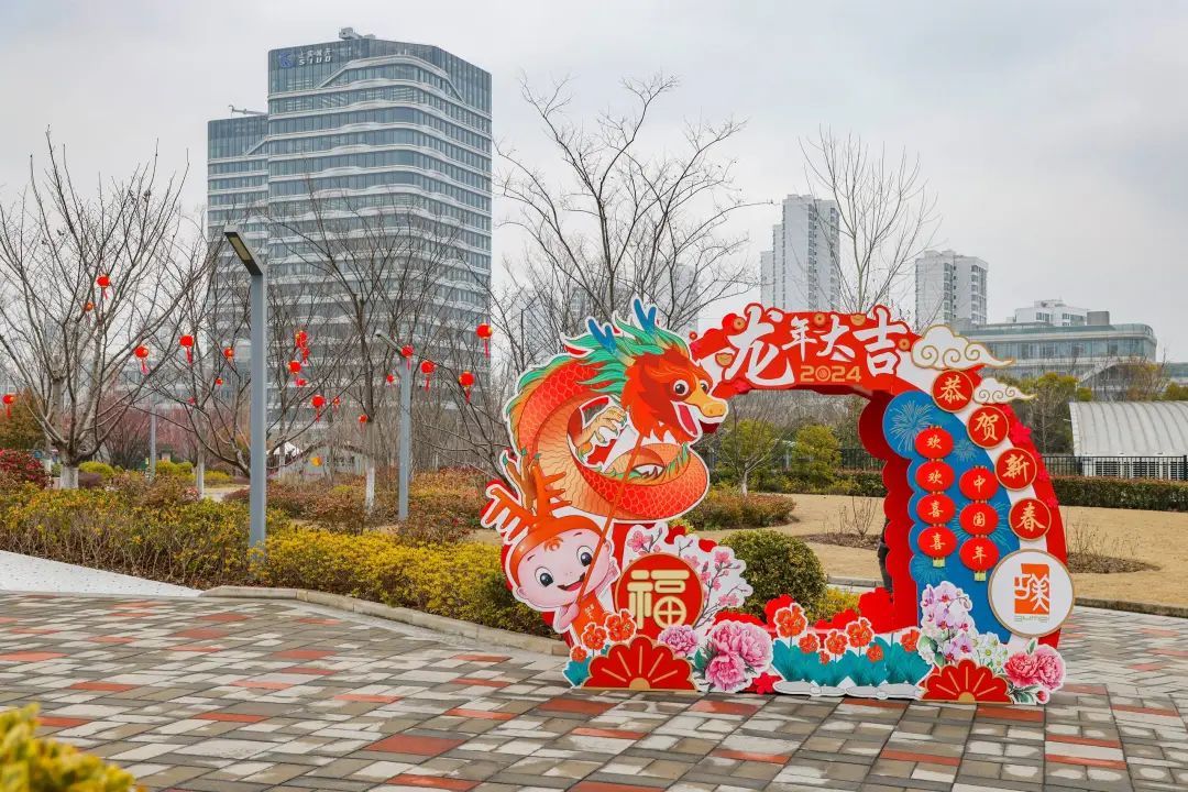 繁花似锦,簇拥着一句句新春祝福,古小美舞起了龙灯……为龙年特别定制的新春场景打卡点悄然出现在了古美公园入口处。集聚龙、祥云、灯笼、鞭炮、古美logo等元素的新春场景打卡点成为今年新春亮眼的龙年地标,让居民朋友在游园的同时,还能拍照打卡,沾福气、迎好运。