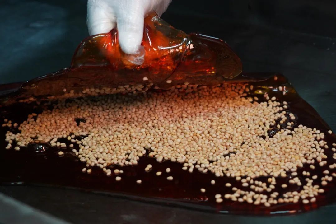 屋里香总经理熊晶晶是个土生土长的上海小囡,她认为正宗的粽子糖需要有被香甜包裹的松脆口感,“松仁是其中的灵魂,为此我们特选东北长白山产地直送的松仁,与天然的白砂糖、麦芽糖精炼而成。”