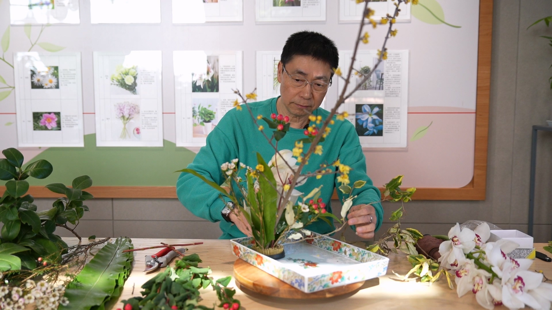 第一课,我们来到静安区西康公园市民园艺中心,邀请中国插花花艺大师、享受国务院特殊津贴高技能人才、上海市劳动模范梁胜芳大师为大家授课,在新春佳节来临之际,让我们一起学习制作一份充满年味的家庭花艺。