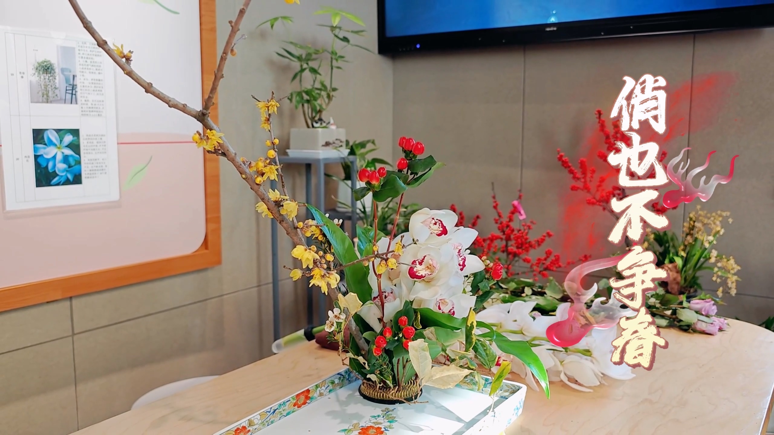 我们今天的花艺作品完成了,梁老师为作品命名为“俏也不争春”,体现梅花的品种和品质的高雅。下期园艺云课堂,我们仍将请到梁胜芳老师为大家授课,敬请期待!