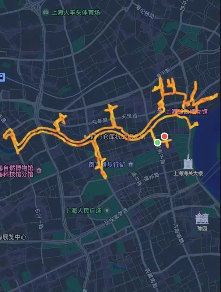 推荐路线:南苏州路-乍浦路桥-金山路-大名路-峨嵋路-武昌路-四川北路-北苏州路-西藏中路-南苏州路