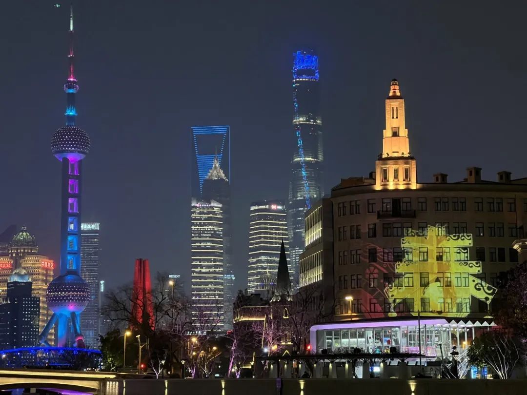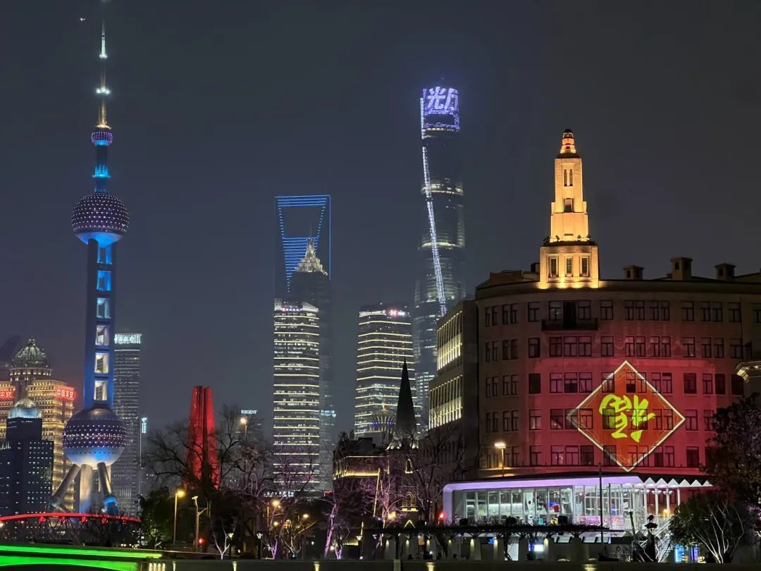 行至苏州河,你可以欣赏到春节主题光影秀。运用彩光、动态光展示流光溢彩、绚丽多姿的夜景效果,营造喜庆的新春佳节气氛。