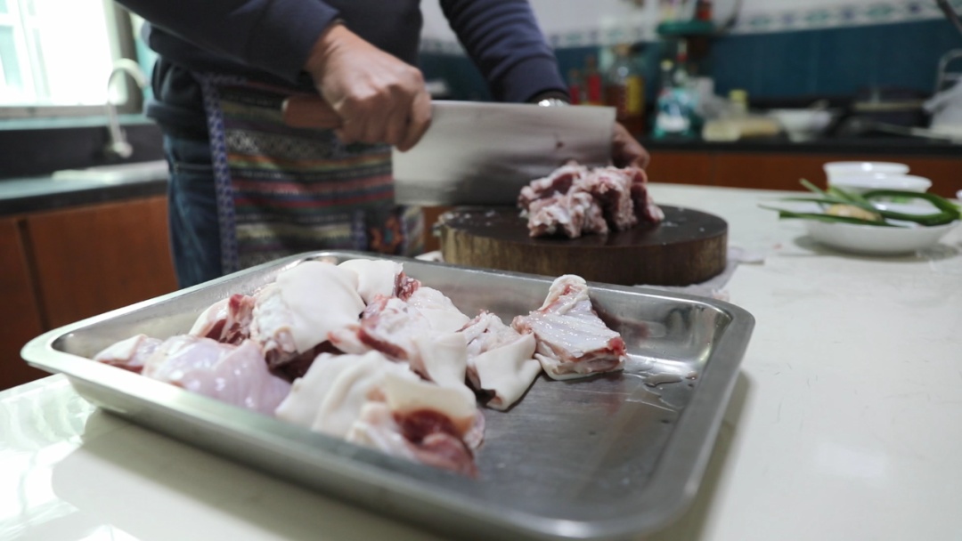 作为“张桥羊肉”非遗美食传承人,黄亚军从15岁开始便跟着父亲学习如何做羊肉,而且这些烧羊肉的技巧,也都是一代代相传下来的。红烧羊肉好不好吃,首先一点就是,羊要选得好,黄家羊肉用的都是金山本地农户自家养的山羊。