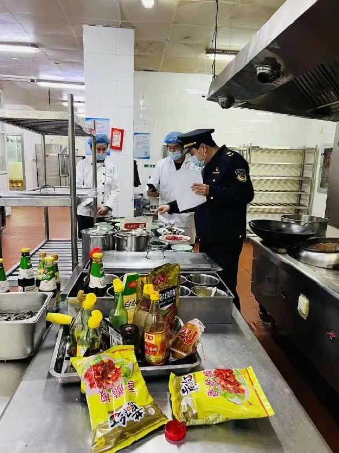 为尊重少数民族学生的用餐习惯,各新疆班学校食堂在食材原料、厨师配备和烹饪方式方面均按照少数民族用餐习惯进行配备,保证学生每日营养。执法人员现场重点检查了学校食堂主体责任落实情况,食品原料进货台账、从业人员健康证明、加工制作流程、场所环境卫生、餐具清洗消毒、就餐安全等重要环节,并现场运用快检手段,对餐具表面的清洁度、农药残留、食用油的过氧化值等开展现场检测。同时,执法人员要求学校进一步落实食品安全主体责任各项要求,加强食品安全知识宣传,培养学生健康的饮食习惯,践行“光盘”行动,落实好反食品浪费等相关工作,确保学生们“舌尖”上的安全。