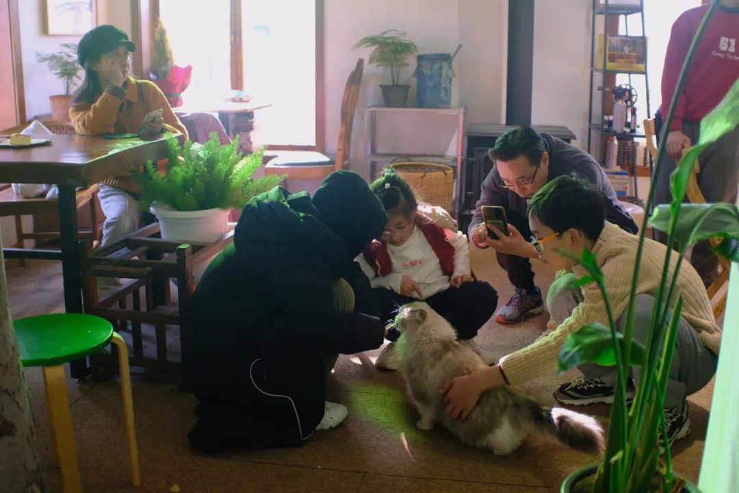 手持一杯咖啡,在香味四溢的角落里看看书……这是市民吕先生的新年“打卡”剪影。“以前就知道这里有家咖啡馆,春节假期正好天气非常好,就跟朋友约了骑行到这里来喝杯咖啡,享受一下慢生活。而且咖啡馆的主人还养了可爱的猫猫,我朋友最喜欢小动物,进来就不肯走了。”对很多市民而言,这家村咖除了“功能”齐全,最出圈的还数能萌翻人的猫咪“合伙人”,它们不仅可以和顾客亲密接触,还能充当拍照模特,一开店便成了店内“顶流”。