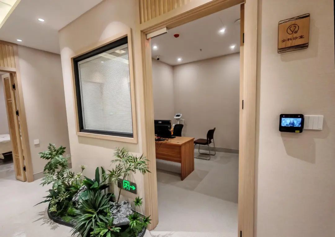 走进站点,中式木质装修风格配以暖黄的灯光,营造了温馨的就医环境,让患者能够放松下来。整个站点约308㎡,将中医元素融入设计装饰,设有全科诊室、中医全科诊室、中医康复治疗等,未来将主打“品智中医”。站点将配备一支由中医全科副主任医师、中医全科主治医师以及主管护师、康复技师、药剂师组成的团队,且都为党员或入党积极分子,提供包括中医全科医疗、中医康复治疗、中医“治未病”、家庭医生签约、家庭病床、老年人健康管理等在内的服务。