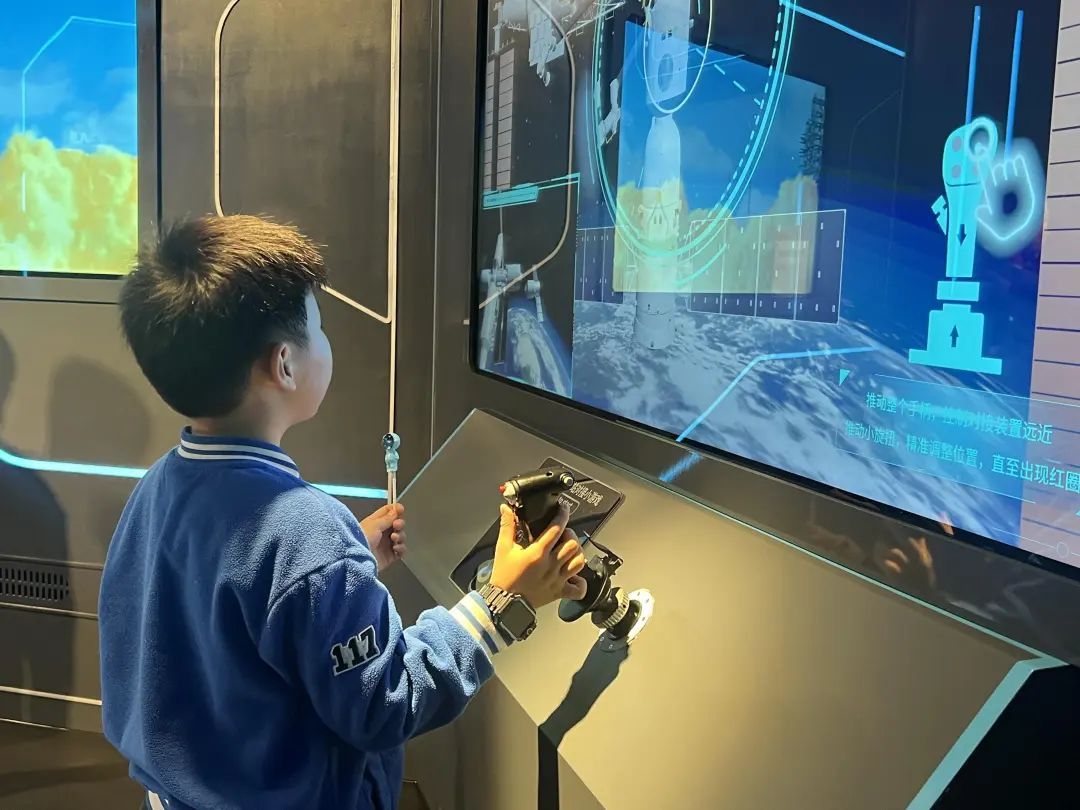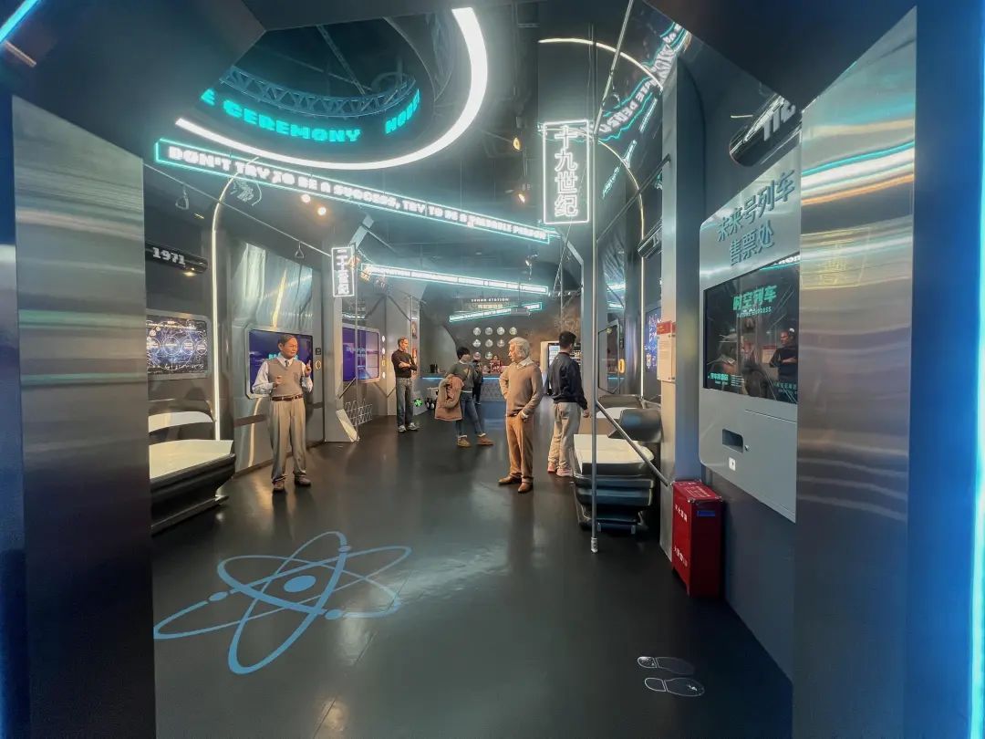 在科技领航者专区,科学家、创业家、宇航员等多位大咖汇聚其中。上海杜莎夫人蜡像馆提供了多种互动体验和科普展示,游客们在这里可以参与科学问答游戏;听AI乔布斯虚拟形象讲述跌宕起伏的人生时刻;穿上宇航服,手握仿真摇杆,体验火箭升空,在互动中了解科学的精彩与奇妙。