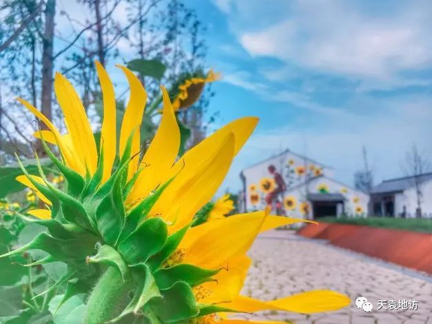 浦江郊野公园,向日葵片区种植在南片区,连游客中心墙体上都是向日葵绘画图案,成片成片的向日葵在阳光的映衬下,一片绚烂夺目的金黄,明亮得让你睁不开眼睛。万朵向日葵随风摇动,拼凑成一片连绵起伏的金色海洋,绝美的景致直叫人沉醉。