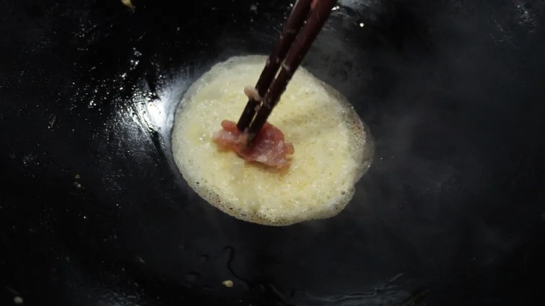 “锅子要烧的烫,蛋皮倒进去很容易挂住,油不能倒的多,不然就要变成炒鸡蛋了,手要翻的快蛋皮才能合的上。”做了几十年蛋饺的徐阿婆,介绍起了制作过程。记者看到,徐阿婆在大铁勺的表面刷上了薄薄的一层油,火候保持在小火,防止火候过大,蛋饺在制作过程中开裂。在锅子中心倒入一汤勺蛋液,带着巧劲轻轻在中间铺出一张圆形蛋皮,待凝固后,放置三分之一的适量肉馅,用筷子揭起一边的蛋皮,对折轻搭在另一边上,再用筷子轻压合拢的蛋皮,翻面定型几秒钟后蛋饺就制作完成了。