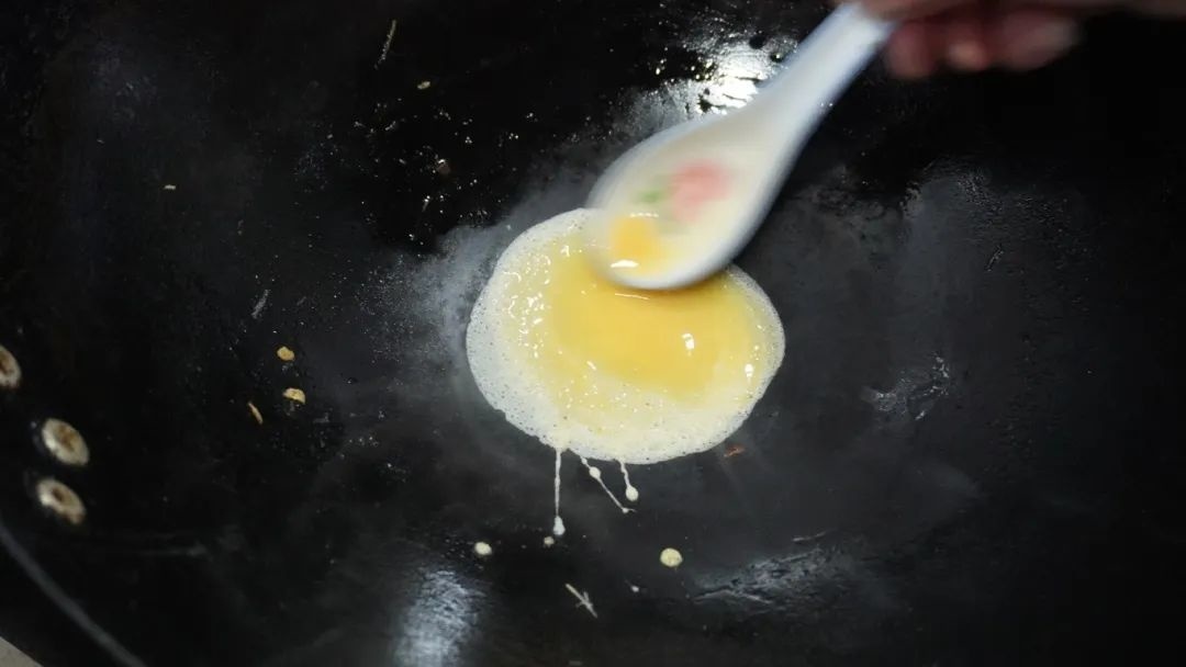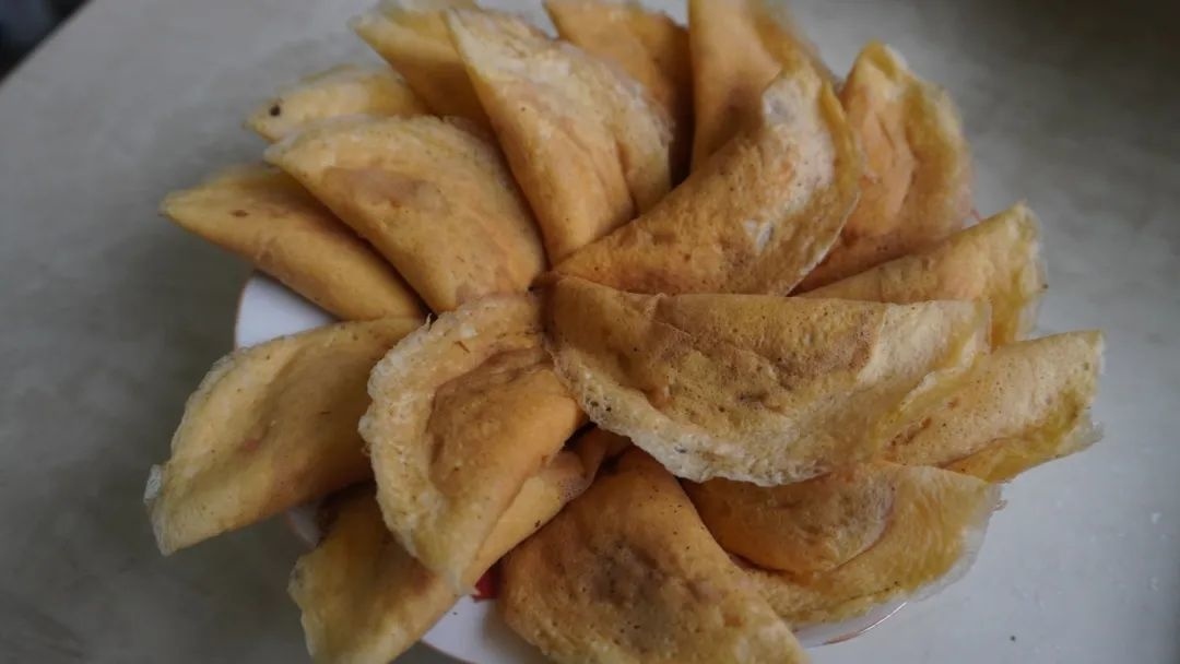 俞阿姨站在一旁说,我们小时候,平时是吃不到的,只有等到过年的时候,全家人才会用一个大铁勺围在一起制作蛋饺。虽然外面大超市现在都有包装好的蛋饺,但是自己制作的味道还是不一样的,围在一起图的就是热热闹闹的过年氛围。