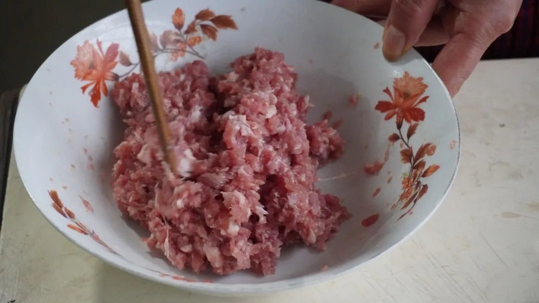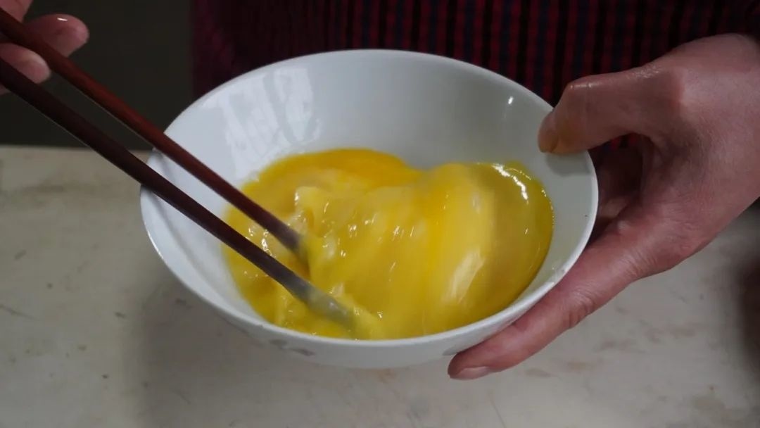 在枫泾人的味蕾记忆中,不知从什么时候开始,在春节餐桌上,几乎家家户户都会有一道鲜的眉毛都掉下来的“全家福”什锦汤,金灿灿的蛋饺是主角之一,也是过去枫泾逢年过节时,家家户户都会制作的一道农家美味。蛋饺颜色金黄,味道鲜美,形似金元宝,寓意着新一年招财进宝、团圆美满。 蛋饺虽看起来简单寻常,但却总能唤起我们记忆深处的幸福画面。在中洪村的徐阿婆家中,她的女儿俞阿姨正在制作这道美味的菜肴——蛋饺。 蛋饺好不好吃,馅料是关键的一部分,“肉要选肥瘦相间的五花肉,制作出来的蛋饺更好吃。喜欢爽脆口感的还可以加一点马蹄碎”。俞阿姨一边搅拌着馅料一边向记者介绍到,自家制作并不讲究刀工,主要是选材比较关键,要选择新鲜的猪肉和和鸡蛋保证口感与营养。新鲜的猪肉剁碎变成肉泥后,俞阿姨依次加入了盐、料酒、生抽、蚝油进行调味,用筷子朝一个方向将其搅拌均匀,期间不断分次少量加入葱姜水进行去腥,从一个方向搅拌至上劲,馅就调好了。 搅拌好的馅料放置在一旁,俞阿姨拿出一个大碗开始准备起另外一个重要的食材鸡蛋。新鲜的鸡蛋打散成蛋液,肉眼观察蛋液没有明显块状就算是搅拌完成了。“鸭蛋可以在制作的时候增加蛋皮的黏度,所以还会在鸡蛋中加入鸭蛋,比例差不多在1:2,为了使蛋饺制作不粘锅,还会在蛋液中滴上几滴食用油。”俞阿姨说起来她多年来的制作小诀窍。