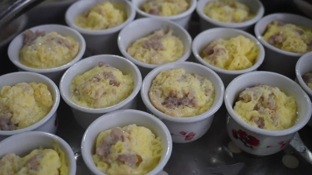 记者注意到,除了小巧玲珑一口一个的小蛋饺,徐阿婆还制作了一个放大版的大蛋饺以及放置在小碗内的蛋圆。“蛋饺制作好,单吃也可以,但大部分情况下是被用作配菜,蒸、煎、煮汤都可以,一般小的蛋饺和蛋圆我们会做三鲜汤或者下火锅吃,大蛋饺上锅蒸熟后可以直接食用。”徐阿婆说。