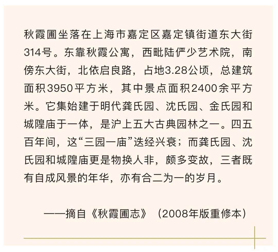 之后我就注意到,秋霞圃的故事中最不寻常的,是在它作为私家园林的两百多年间(1502—1726),其园主居然在龚氏和汪氏两家之间两度变换。据2008年版《秋霞圃志(重修本)》(下同)记载: