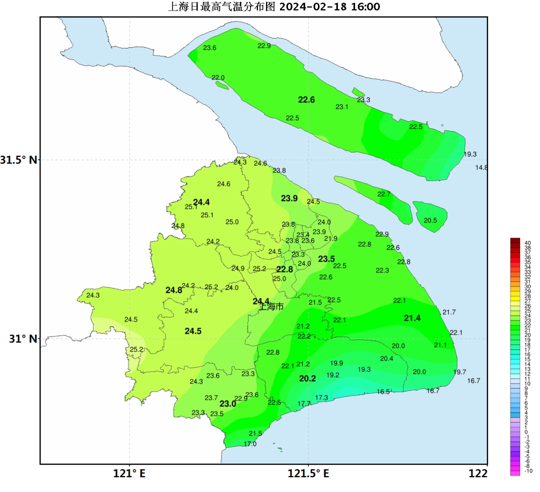 申城今天以多云到阴天气为主,中午以前局部地区有短时阵雨,雨量微弱在1毫米以下。今天升温明显,最高温度普遍在21—25℃之间,其中青浦站24.8℃为最高,徐家汇站最高温度22.8℃。
