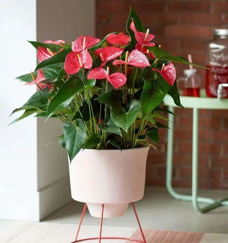 作为天南星科花烛属中高颜值花卉,安祖花的佛焰苞颜色鲜亮纯正,单朵的观赏时间可长达60天以上。安祖花开花勤快,只要条件适合,可全年开花。适合摆放明亮且有散射光的环境中,花期每10-14天补充一次磷钾肥,有利于花苞孕育和开放。
