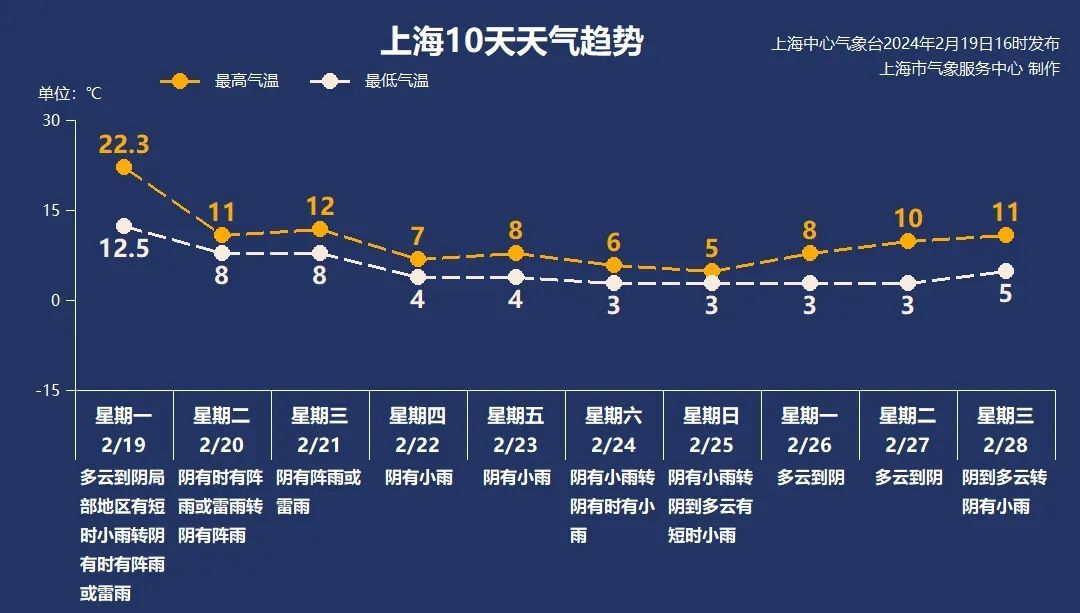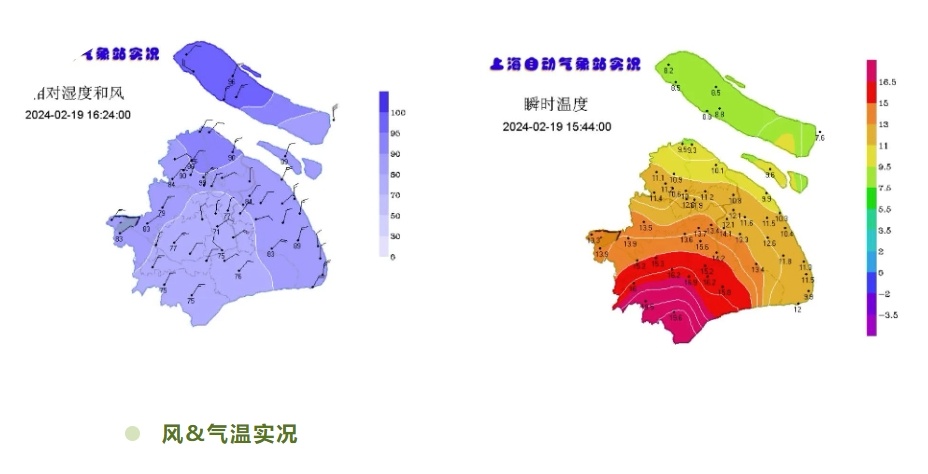 冷空气到达之前,阳光呵护,暖湿气流强势掌控,上海今天又冲上了20℃,市区徐家汇站最高气温定格在22.3℃。相对湿度大部分时间都在70%以上,暖湿感倍增。不过,中午前后随着冷空气前锋靠近上海,北部地区率先开启降温+大风,随后冷空气步步覆盖各区,气温色斑图上降出了渐变色,北部降幅超过10℃。白天陆地最大阵风6级,沿江沿海地区7级,暖的局面被扭转。